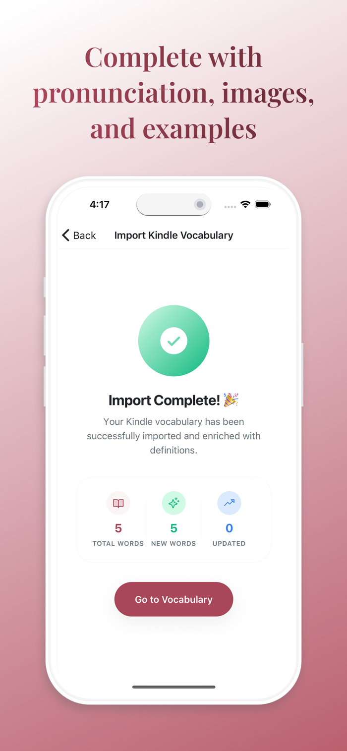 Already a Kindle reader? Instantly import all your highlighted words and lookups from your Kindle device. LexiForge automatically enriches them with definitions, examples, and context—turning your reading discoveries into a structured learning system.