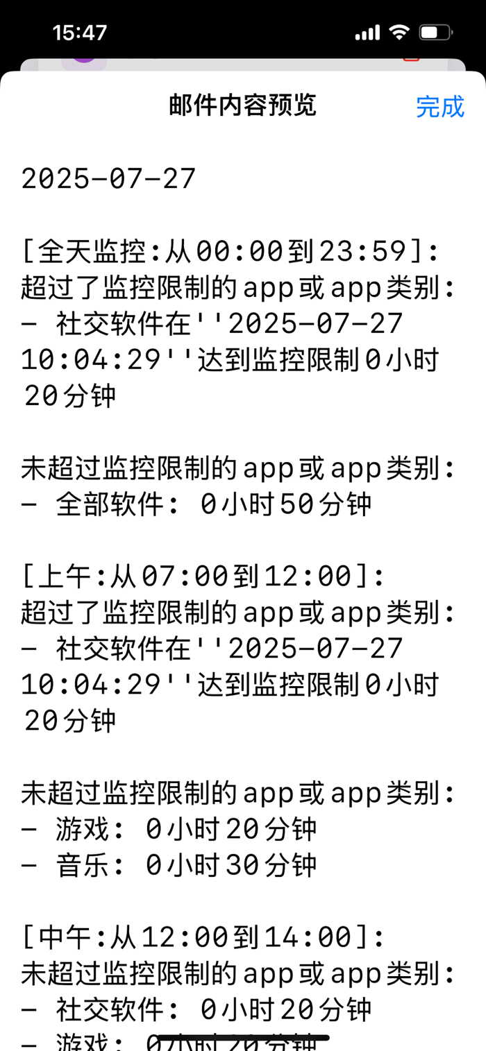 • 自动发送屏幕时间报告到父母邮箱或者iMessage,无需检查手机