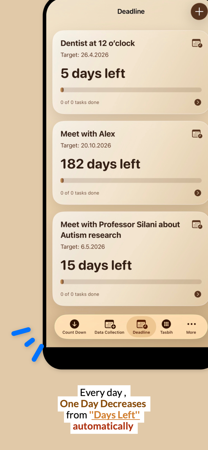 Counter Plan is an elegant all-in-one— private counters, tasbih, deadlines , tracking and date records in one app.