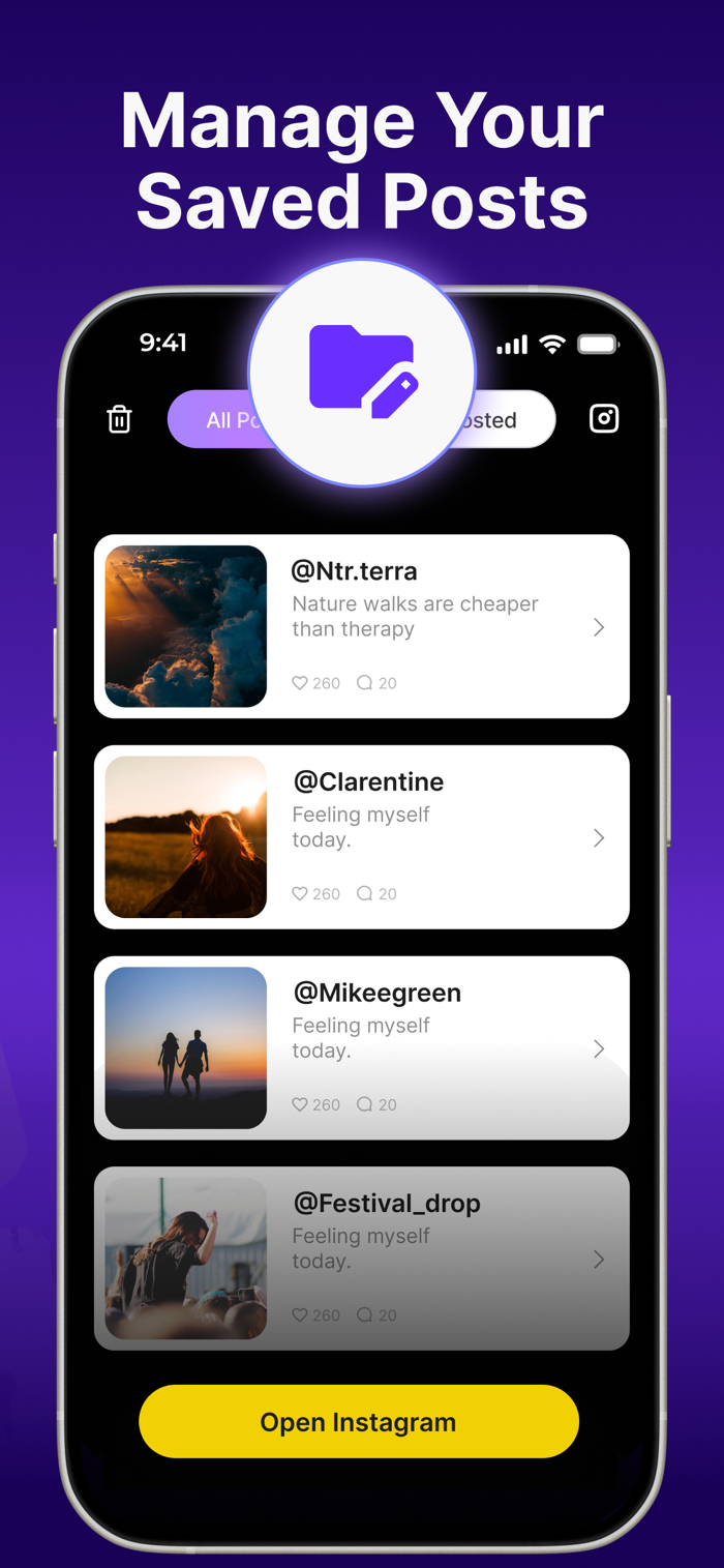 • Repost photos, videos, and stories instantly