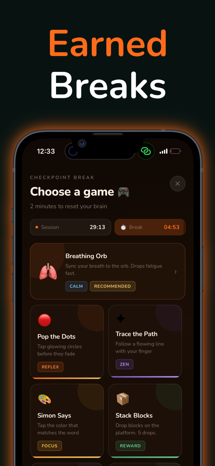 Ember是一款专注应用,能让你的休息更有价值。 session开始时它会屏蔽干扰应用,休息时解锁小游戏,助你重置大脑且不丢动力。使用时先设定目标,然后它会在整个session中屏蔽如Instagram、TikTok等干扰应用,每25分钟休息时解锁小游戏,让大脑获得小胜利、快速挑战和多巴胺刺激,助你更敏锐回归,还能追踪专注时长。