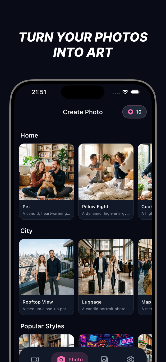 上传你和伴侣的照片,选择风格,AI 即刻把你们变成惊艳的艺术作品。可选吉卜力、文艺复兴、Funko、宠物、屋顶景致等多种风格。