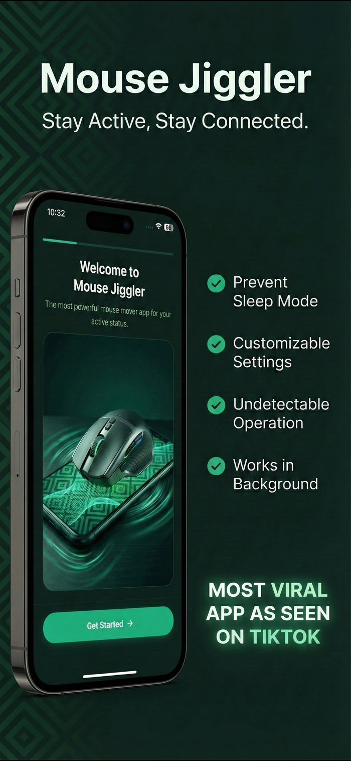 • Simulated Mouse Input — Generates subtle cursor movement to prevent screen sleep or inactivity.