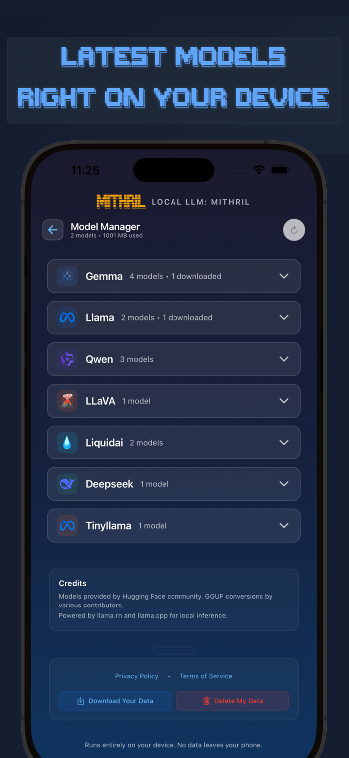 无需云端或网络,直接在你的iPhone上运行量化大语言模型。获取适用于移动硬件的先进量化人工智能模型,下载GGUF格式的模型。它提供了一个完整的模型套件,包括Llama 3.2、Gemma 3、Qwen 2.5、LLaVA 1.5/1.6,并直接集成了Hugging Face。技术特性包括GGML/llama.cpp推理引擎、Metal GPU加速、动态上下文窗口管理、RAG、实时流以及带有向量搜索的SQLite对话存储。