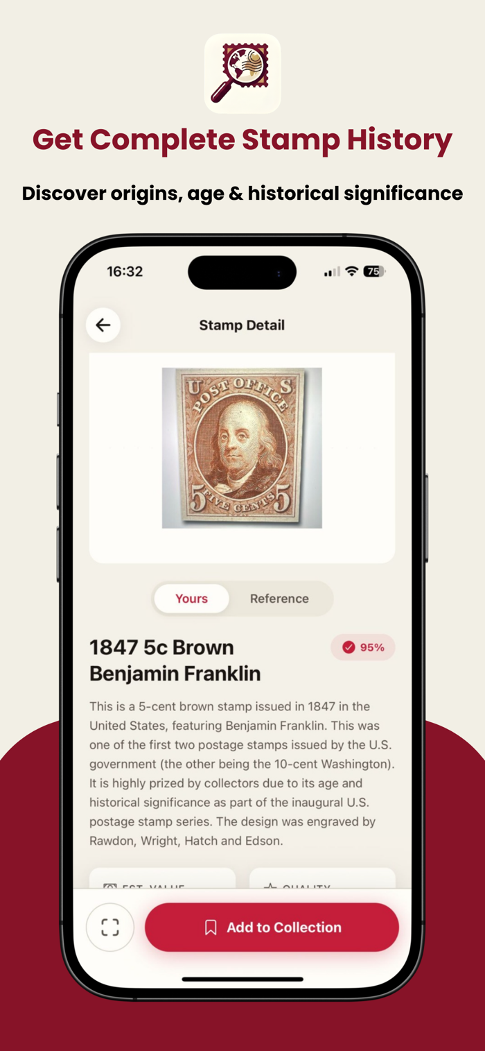 StampLens AI是由先进人工智能驱动的最准确邮票识别应用程序,能即时发现邮票“票面价值”。无论邮票来源如何,它都能帮你秒速识别并了解其价值。具备即时邮票识别功能,用相机对准邮票即可获结果,可识别超200个国家邮票,提供包括原产国、发行年份等详细信息,还能基于当前拍卖数据和收藏价格进行准确价值估算。