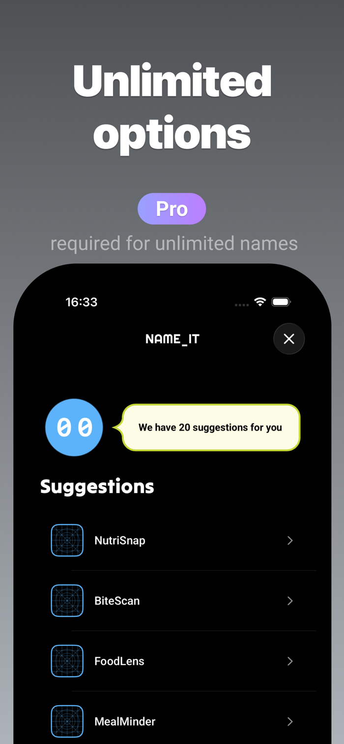 Simply describe your app idea and get a curated list of relevant name suggestions in seconds — built around what your app actually does.