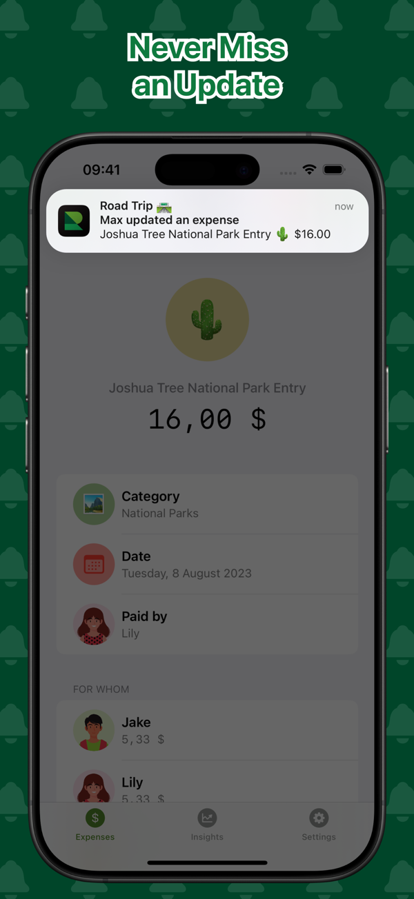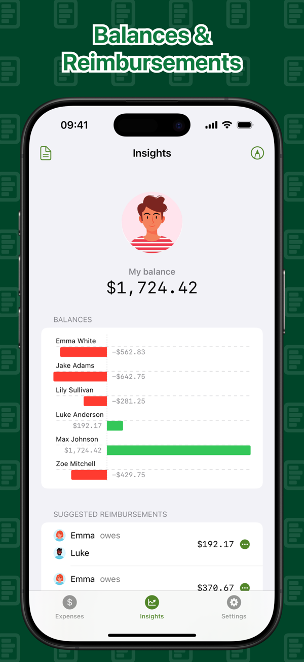 • Instantly view group balances and who owes what