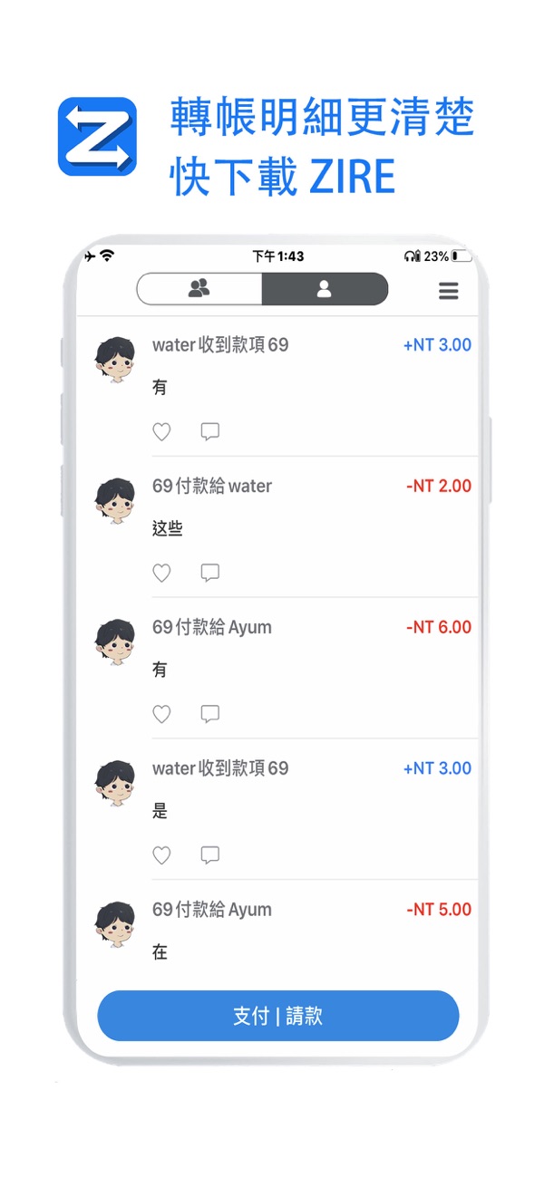 Zire擺脫以往複雜的轉帳流程,是一款快速、安全、擁有社交功能的支付收款APP