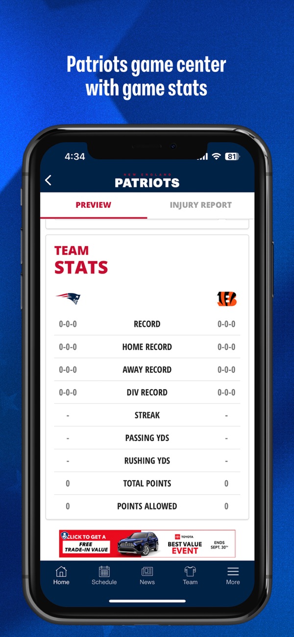 - Advanced Patriots Game Center with LIVE play-by-play, game commentary and game stats