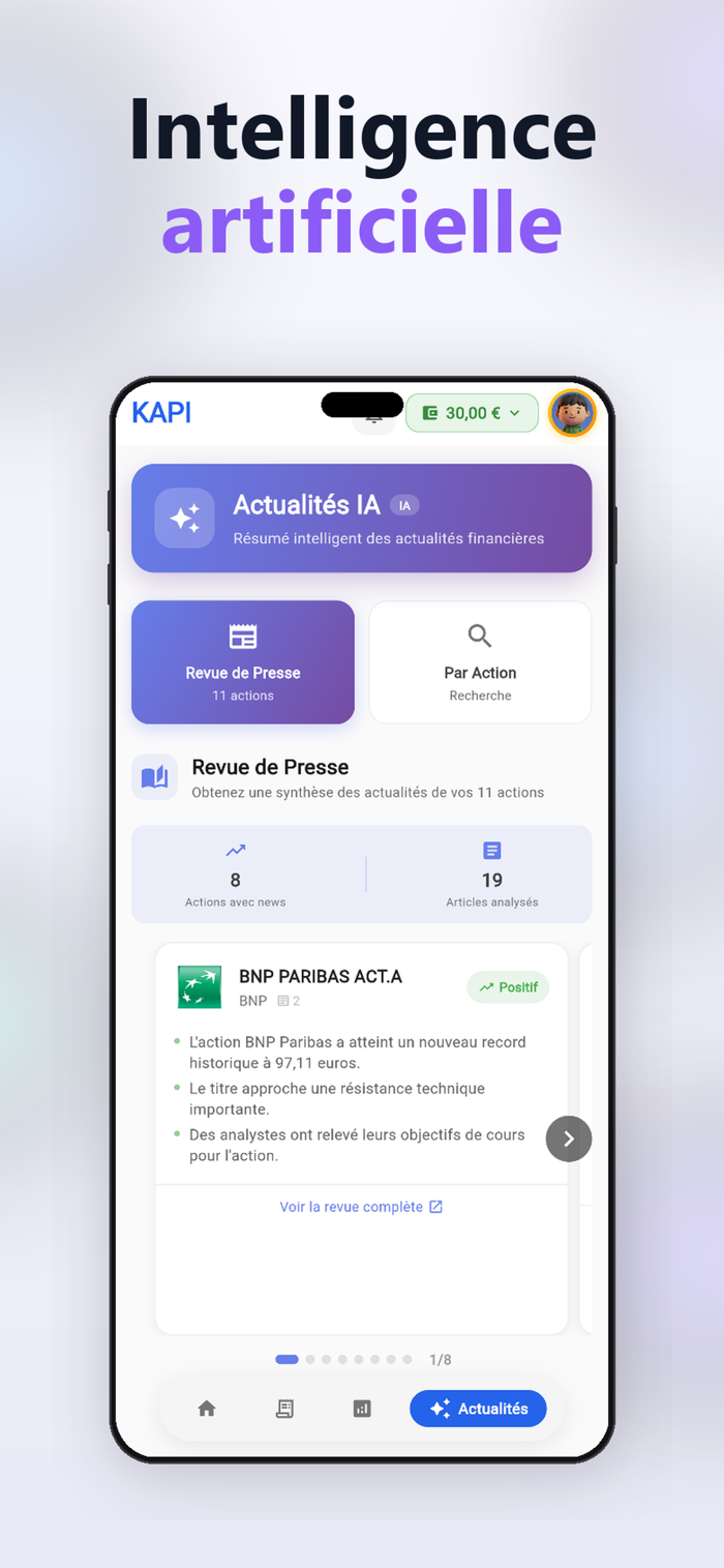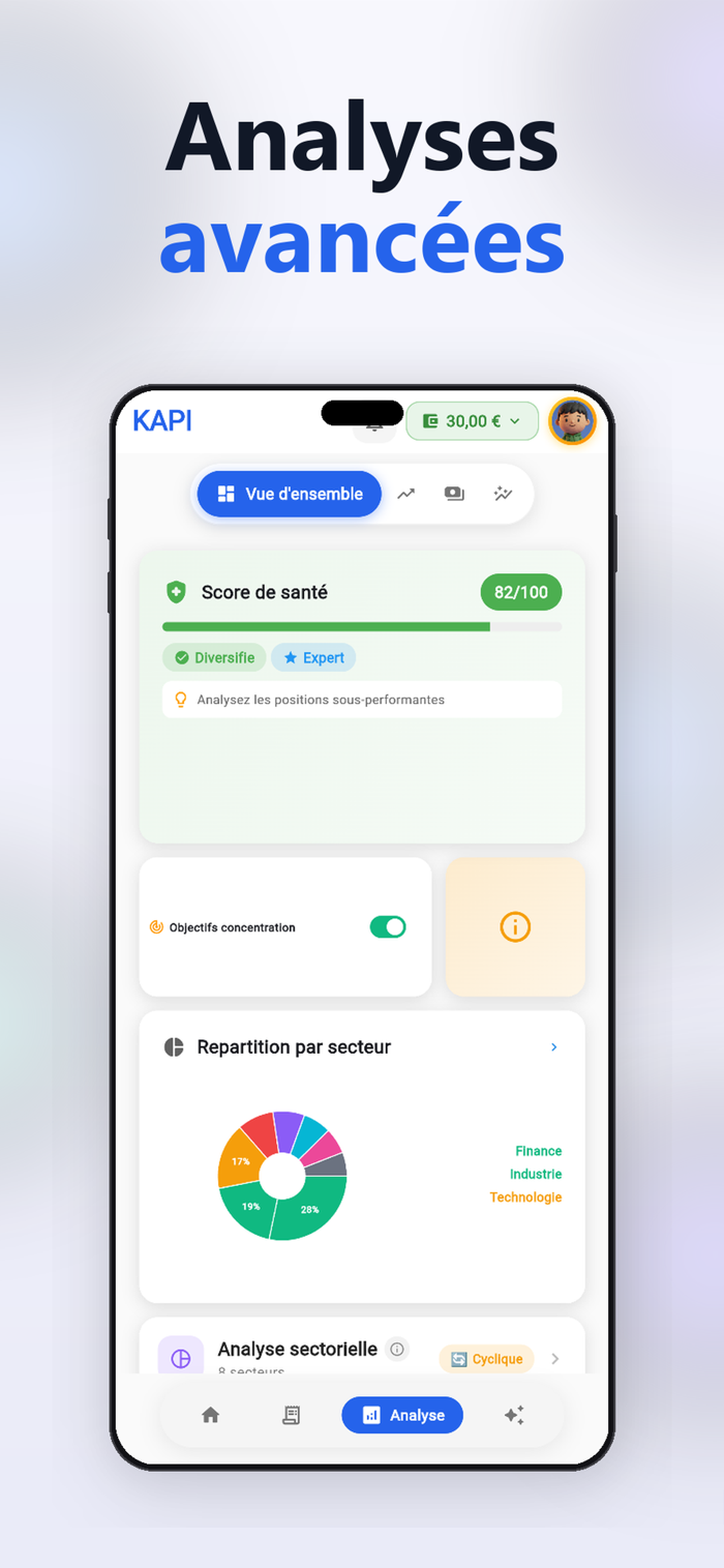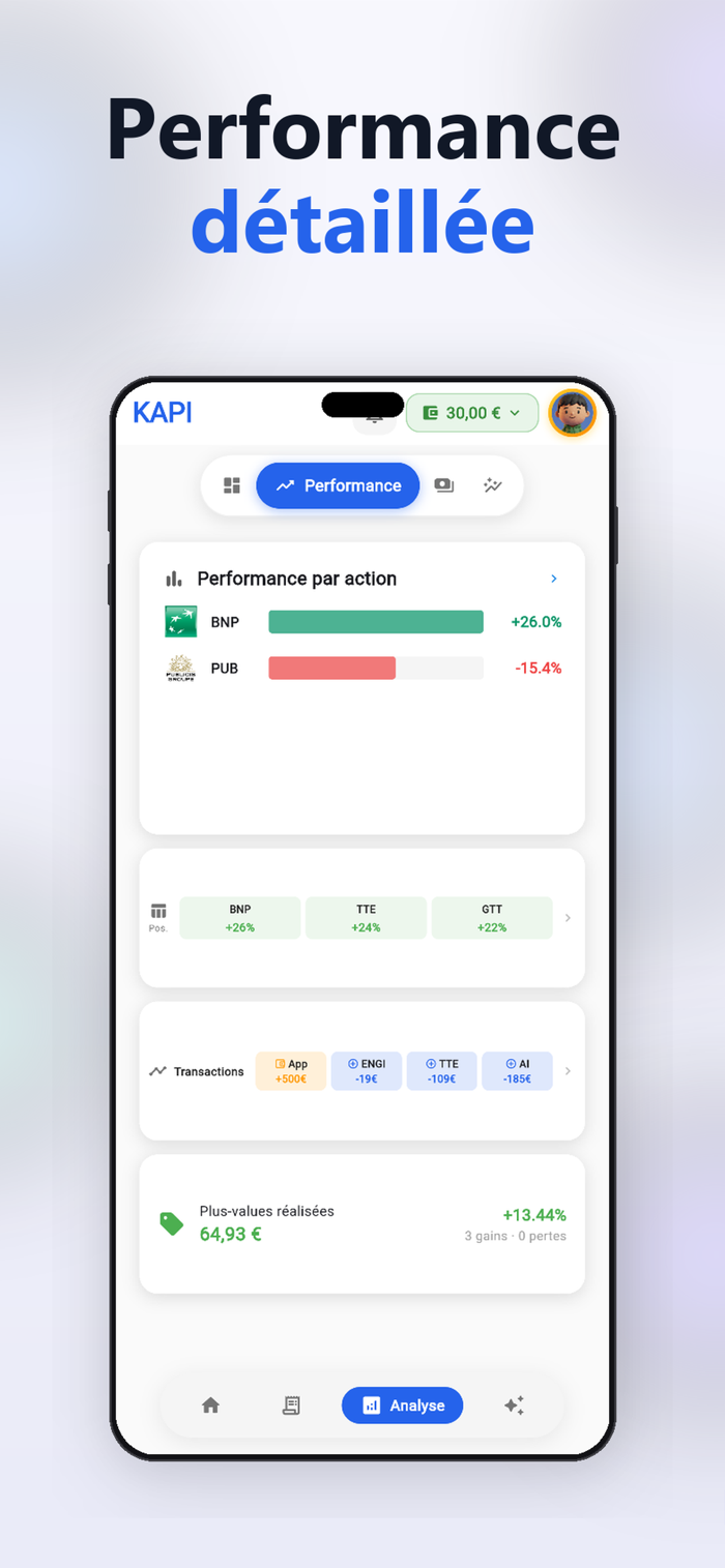 Kapi est l'application de gestion de portefeuille boursier conçue pour les investisseurs particuliers qui veulent aller plus loin.