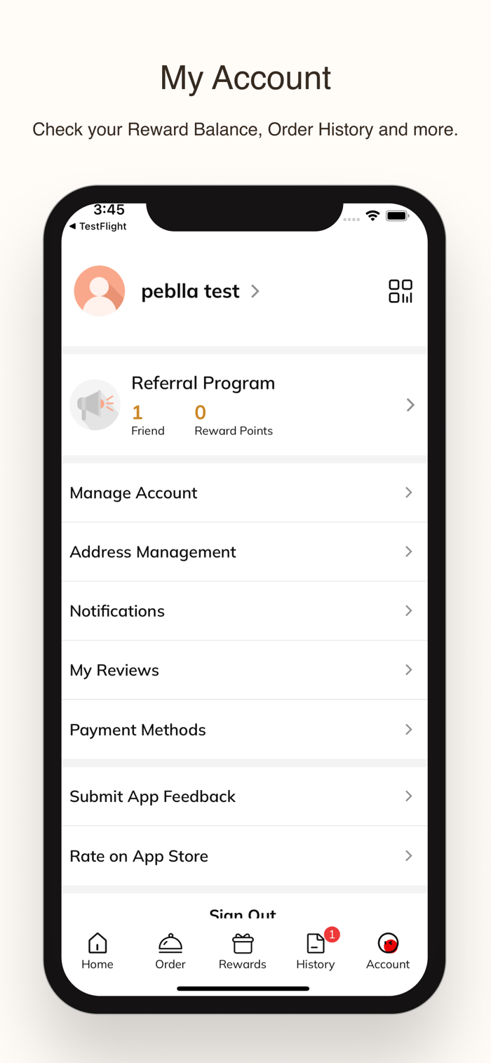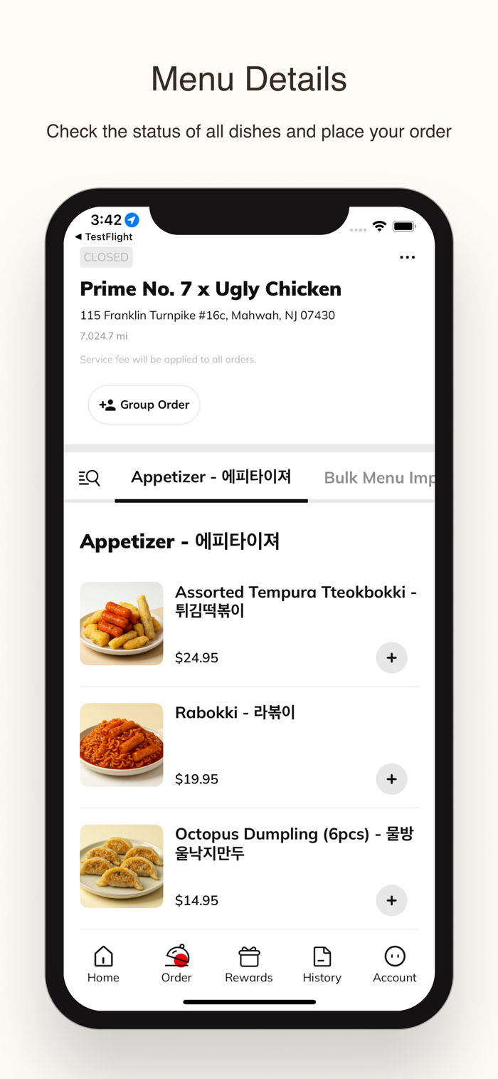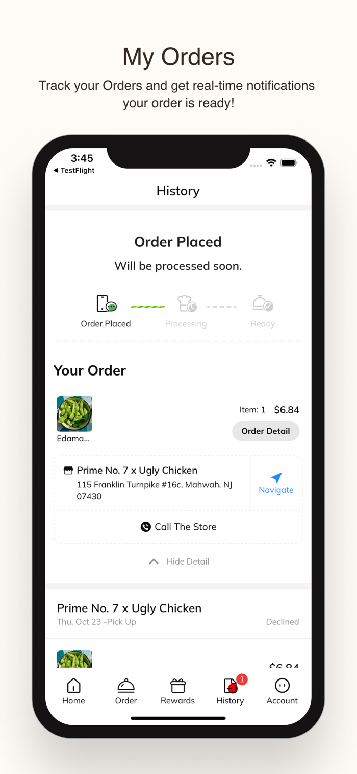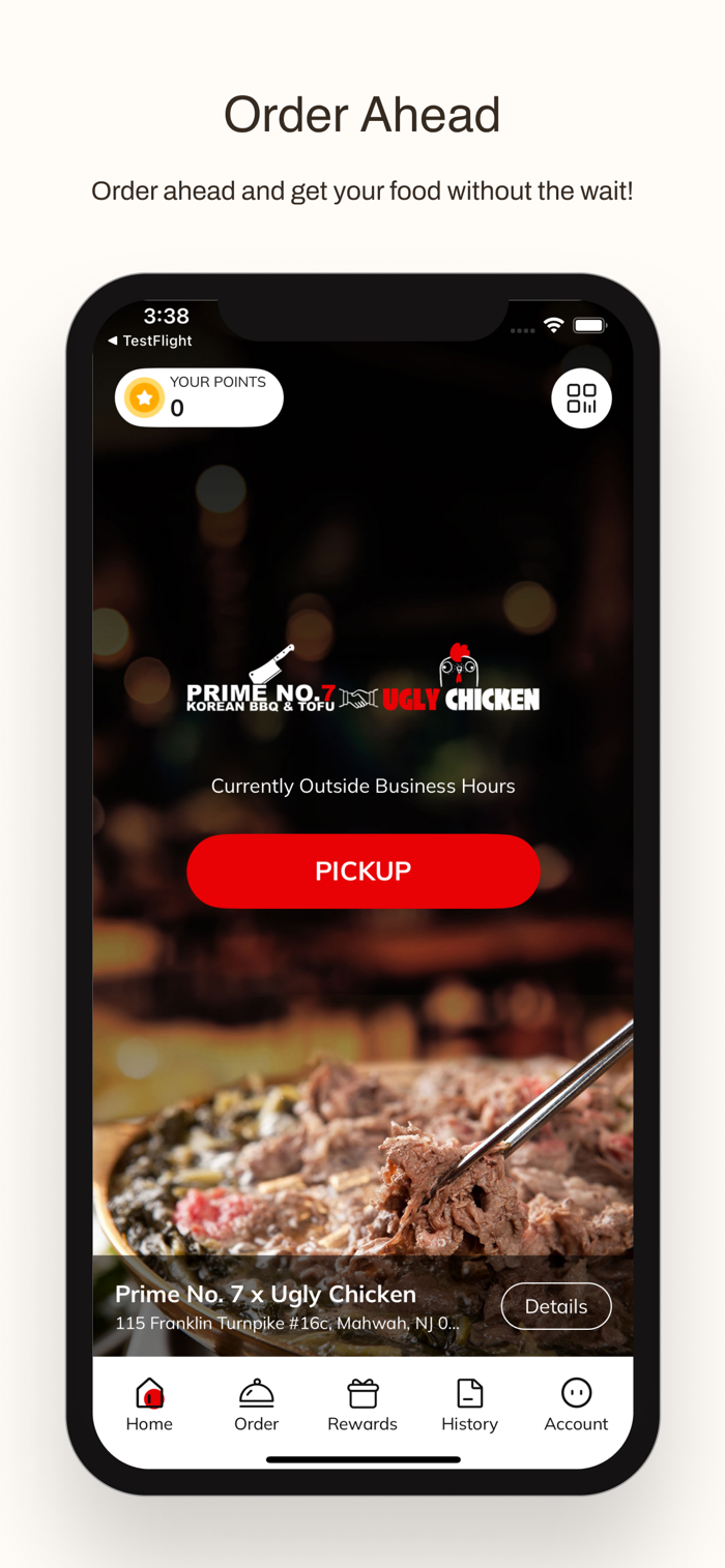 Order Ahead Order ahead and get your food without the wait! Menu Details Check the status of all dishes and place your order. My Orders Track your Orders and get real-time notifications your order is ready! My Account Check your Reward Balance, Order History and more.