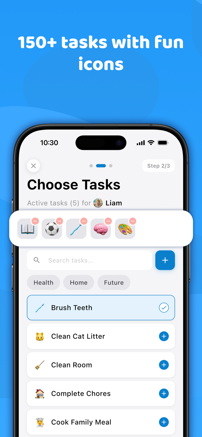 • 150+ Built-in Tasks: Use our library with kid-friendly icons or create your own custom chores.