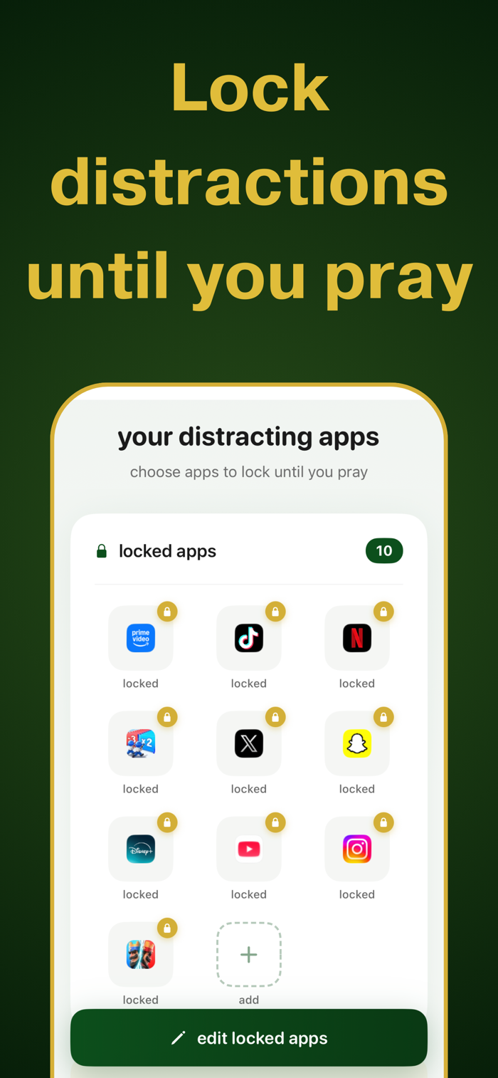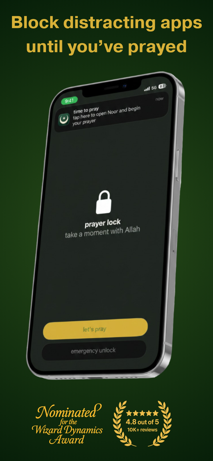Prayer Lock: Noor is a Muslim-focused app designed to help you pray consistently, reduce distraction and build real discipline in daily life.