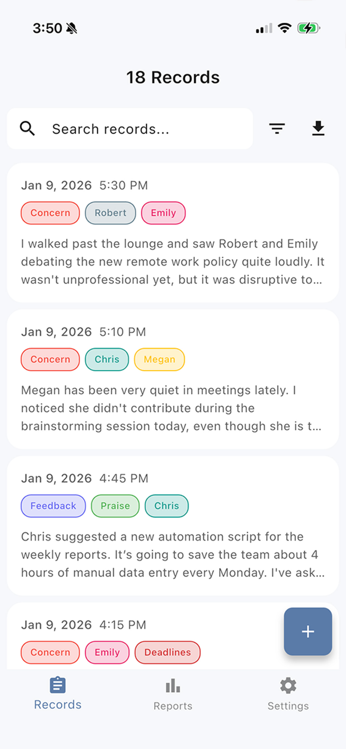 QuickNotes Supervisor is designed for structured oversight, not social sharing. Your records stay private and device-local unless you choose to export or share them.