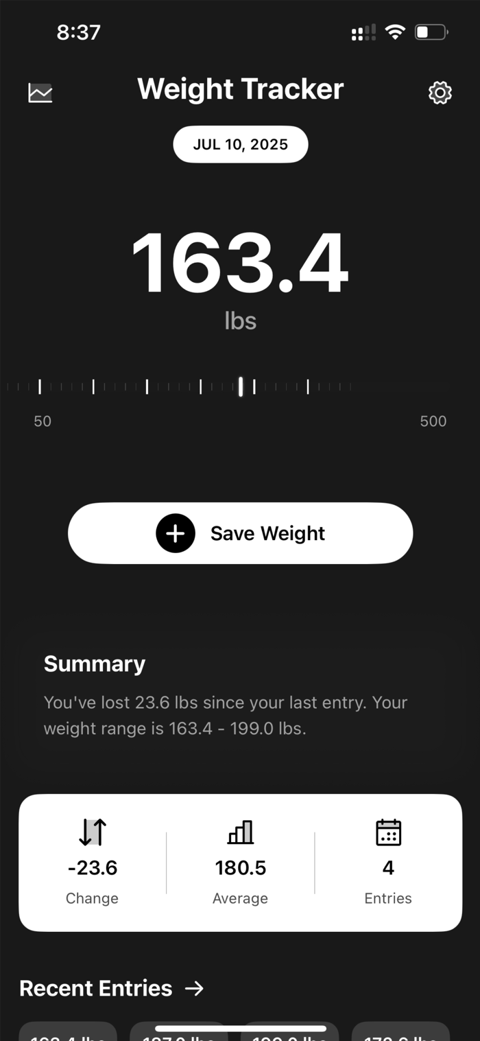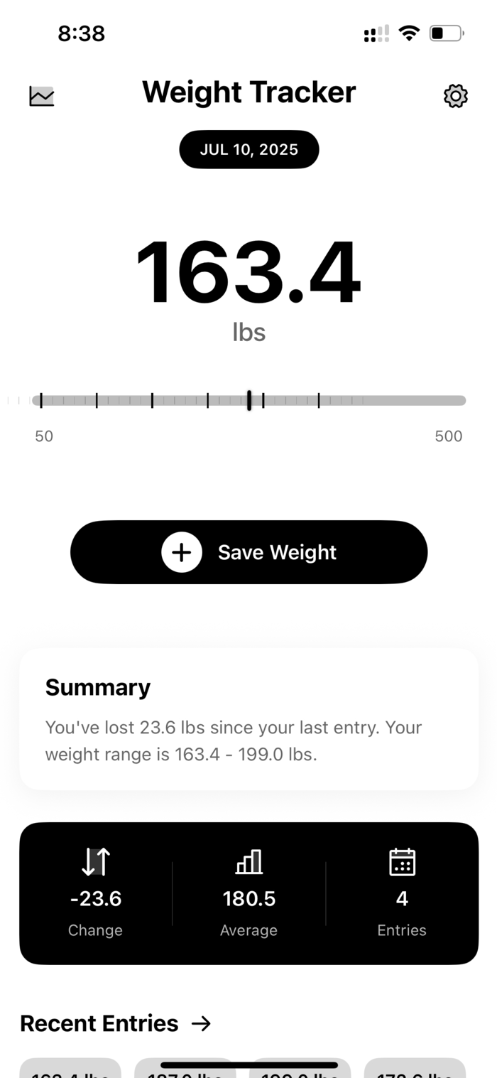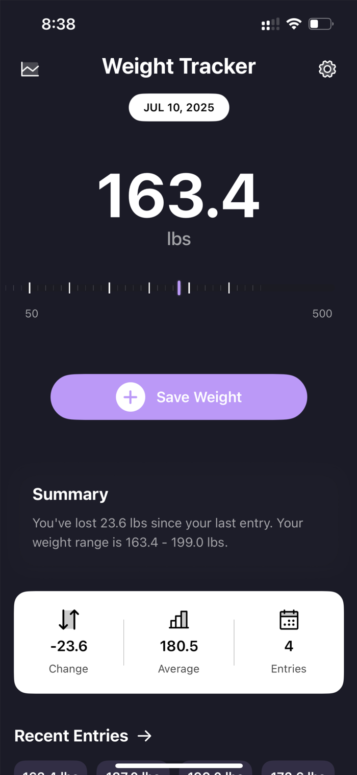 The intuitive interface makes weight tracking effortless while powerful features satisfy advanced users. Beautiful visualizations motivate continued progress while detailed analytics provide actionable insights into your health journey.