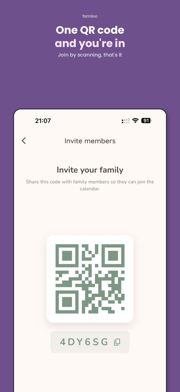 – Grandparents: simple interface, join via QR code with no account needed. They see the grandkids' events in real time.