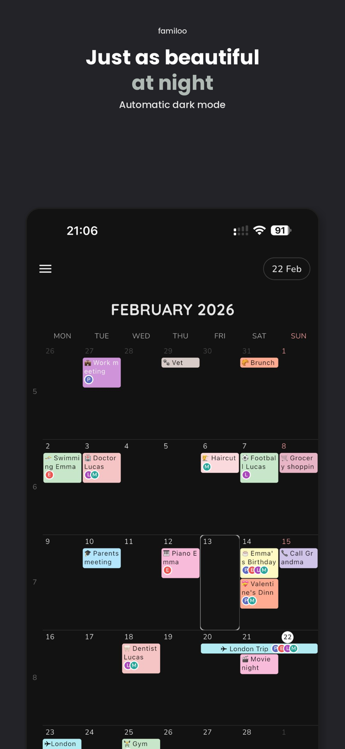 Co-parenting, blended family or traditional household — Familoo works for your situation, from ages 9 to 99. Zero tracking.