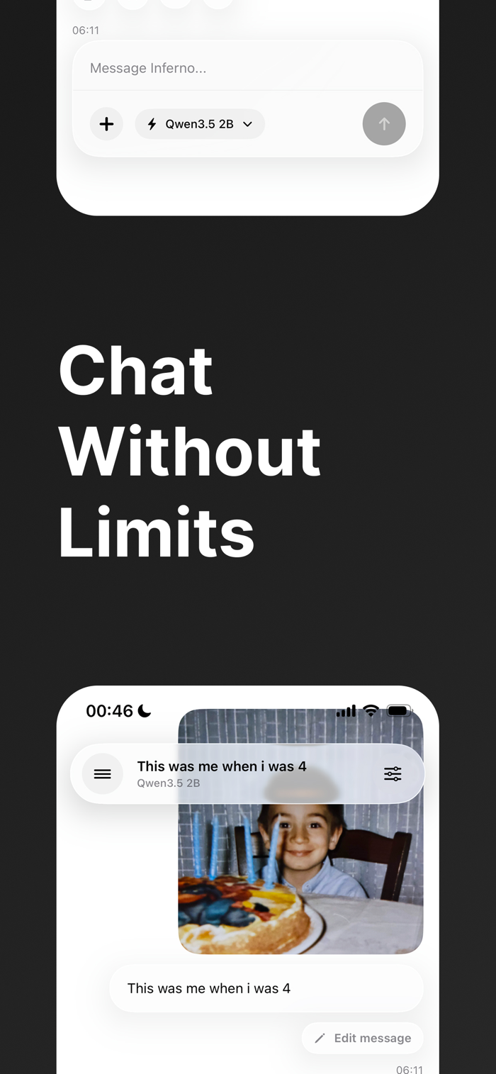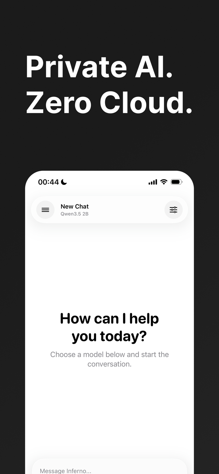 Inferno by Eyed™是一款由本地大语言模型驱动的私人设备端AI助手,无需依赖云端,无需账户。能在iOS和iPadOS上本地运行最新Qwen3.5模型,可自然聊天、起草邮件笔记等、秒速总结文本、头脑风暴及改写内容,还能离线工作。具备隐私至上、本地优先速度、可靠、专注体验等优势,适合追求个人、私密且随时可用AI的用户,可本地下载运行。