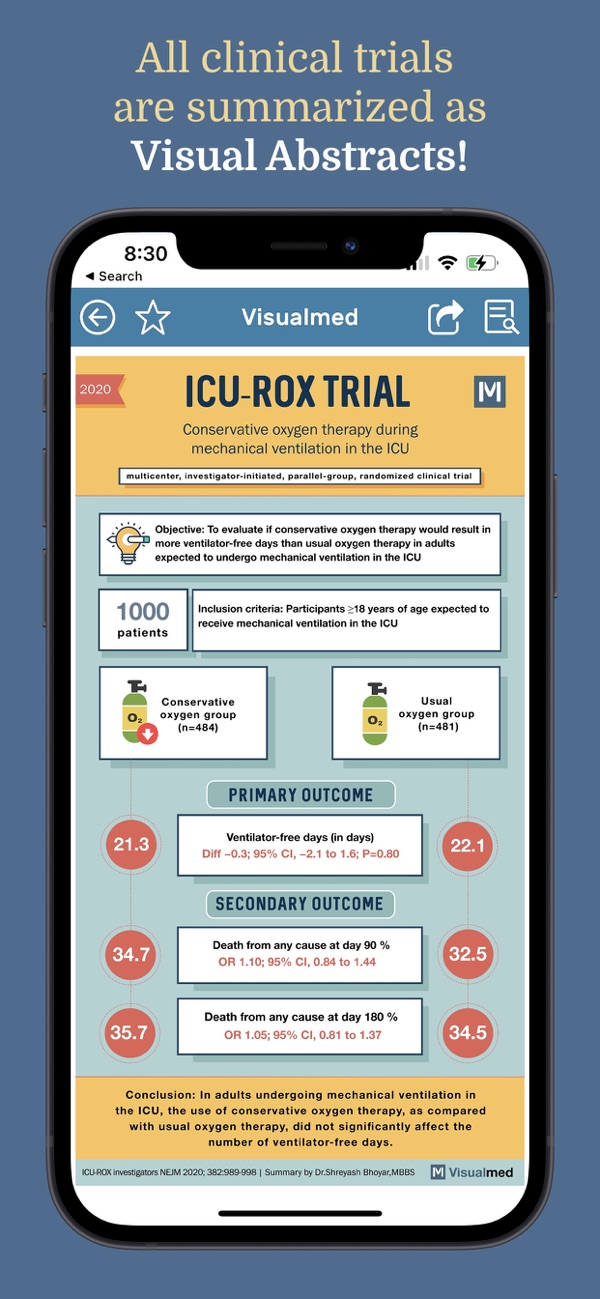 Visualmed app provides visual infographic based summaries of landmark clinical trials in medicine and other fields of health care.