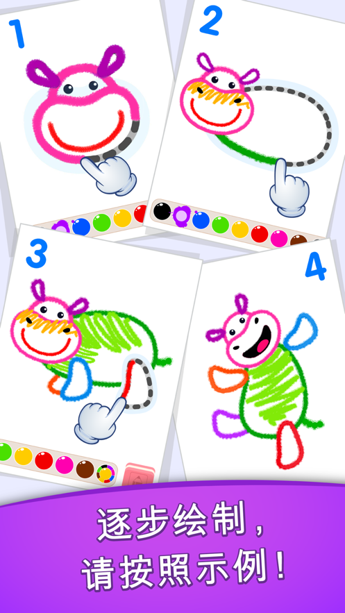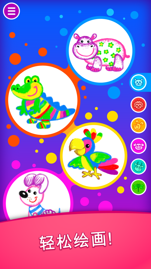 在屏幕上画画可以让孩子感受到愉悦与快乐,即使是幼儿也会发现,绘制可爱的角色如此简单容易!语音提示和虚线将帮助您的孩子迅速养成良好的艺术习惯和培养良好的运动技能。