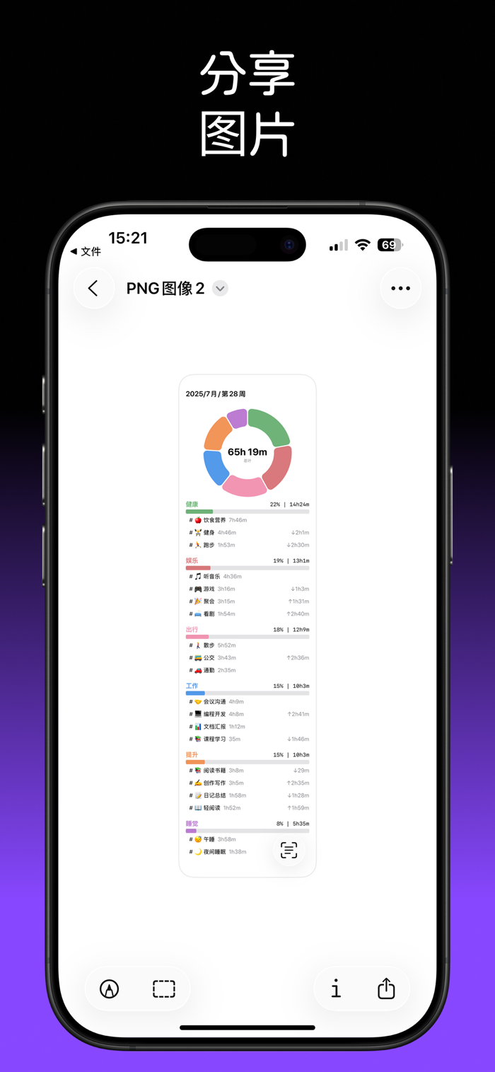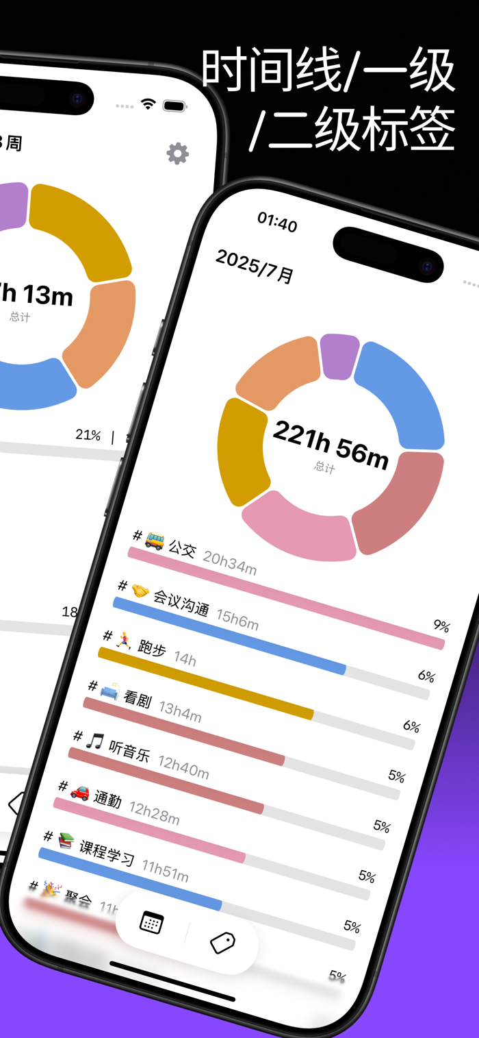 • 总时长、标签分布、趋势分析,助你持续优化时间利用