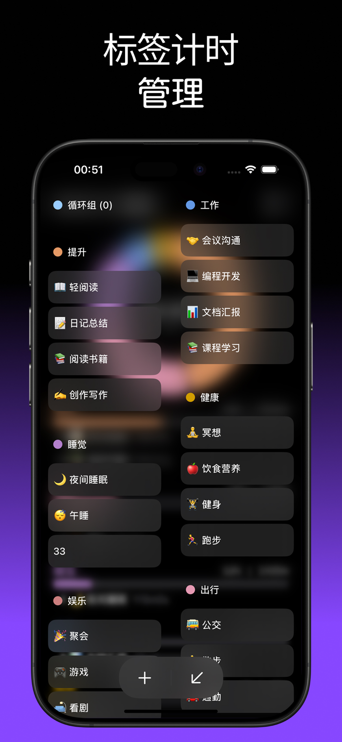 • 一级标签(如:#工作、#健康、#娱乐)和二级标签(如:写代码、跑步、阅读)分层管理