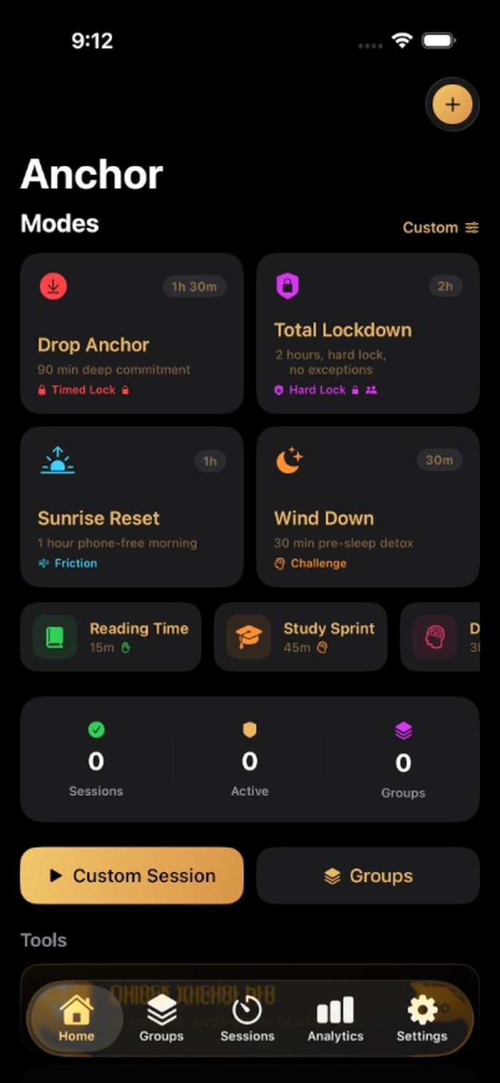Anchor通过强大的应用程序拦截、专注时段和问责工具助您掌控屏幕使用时间。可创建自定义拦截组屏蔽干扰应用,设置锁定时段防退出,用解锁挑战如阅读、写日记等培养正念习惯。核心功能包括应用和网站拦截、专注时段、解锁挑战、问责伙伴、智能日程安排、睡前放松、使用分析,如追踪拦截时间、连胜记录、回头率及Anchor评分等。