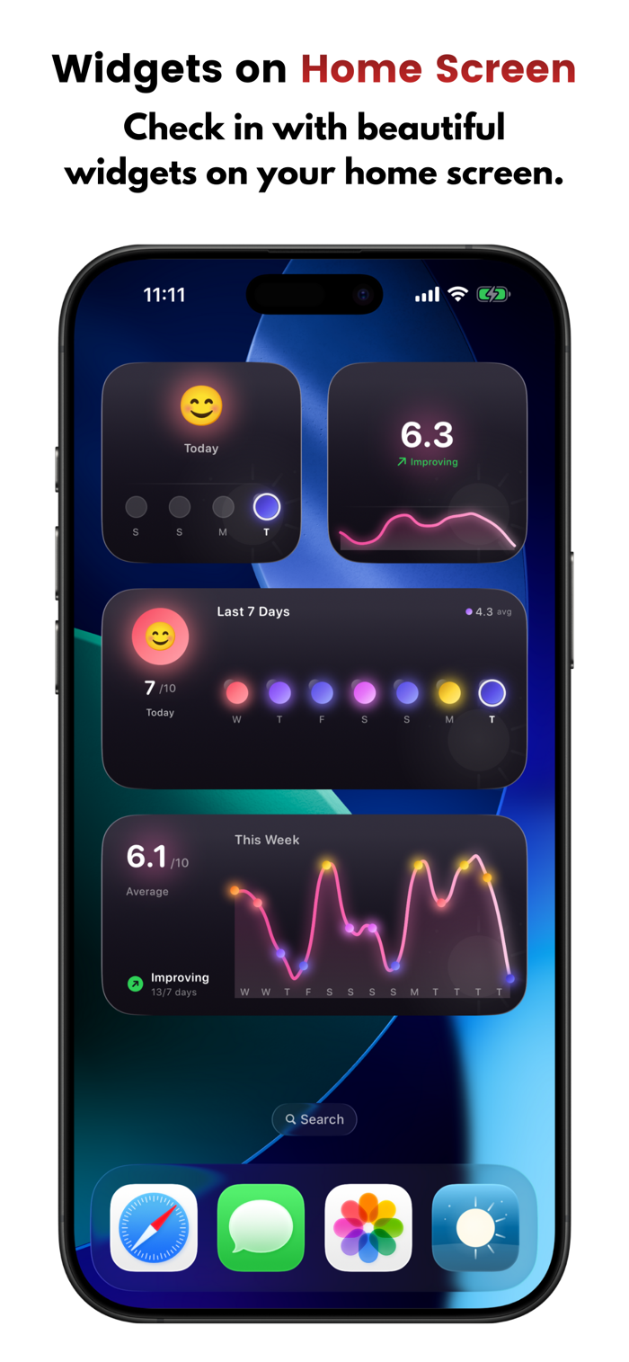 Keep your mood, streak, and quick check-in within reach—right on your Home Screen and Lock Screen.