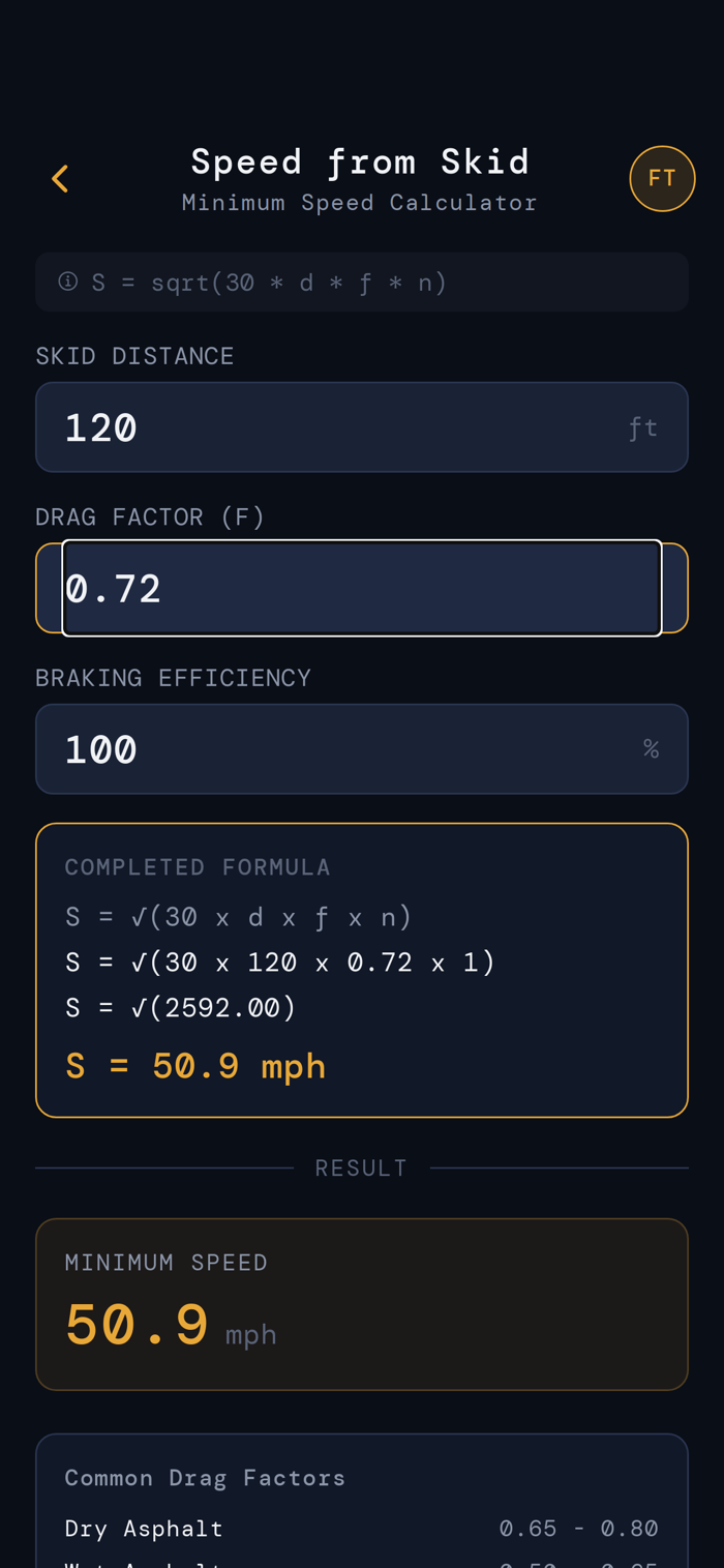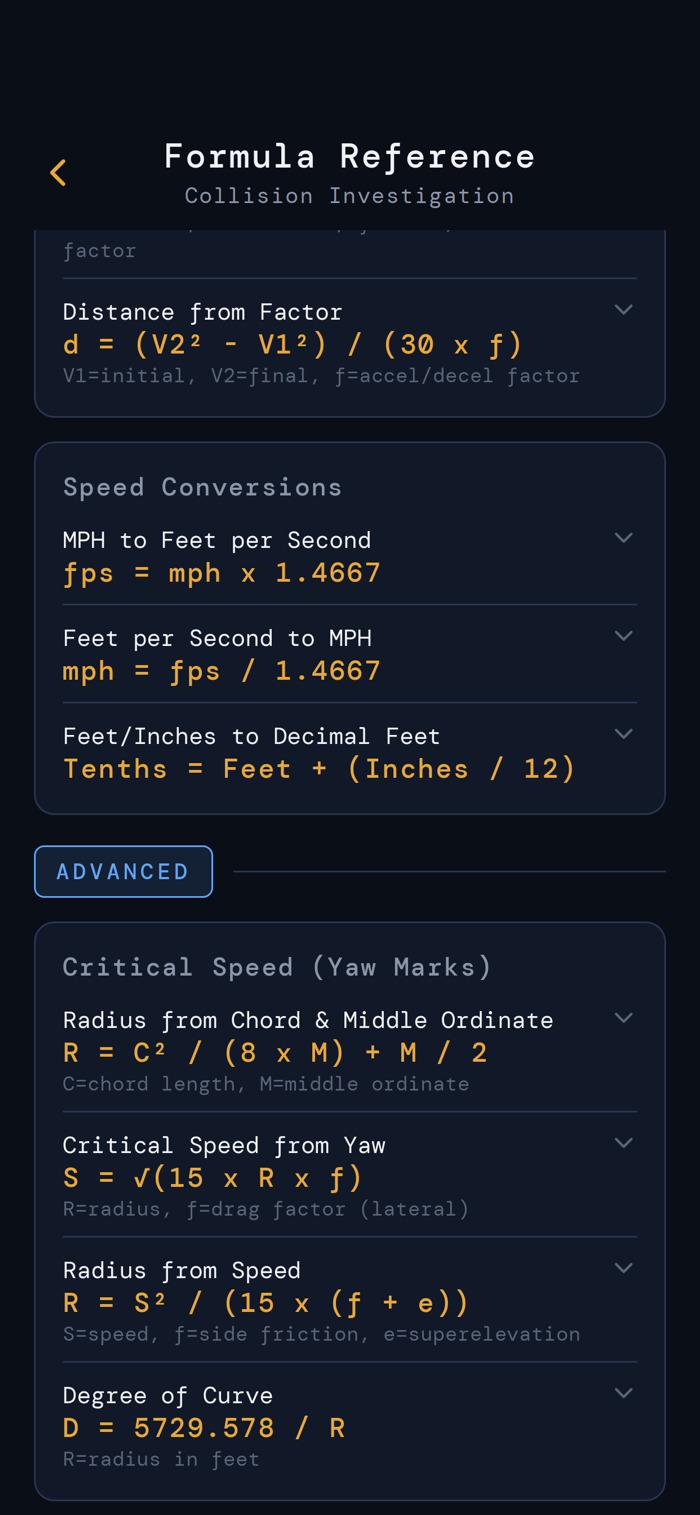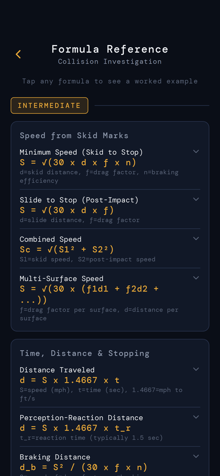 CrashMatrix Pro puts the power of advanced collision analysis in your pocket. Built by a veteran law enforcement professional with 35+ years of experience, this app delivers 37+ industry-standard calculators used in traffic crash reconstruction.