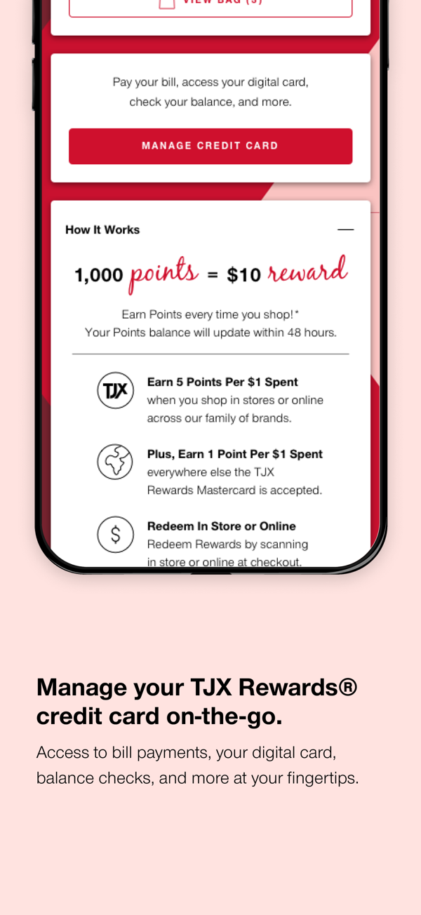 • Manage your TJX Rewards® credit card on-the-go: