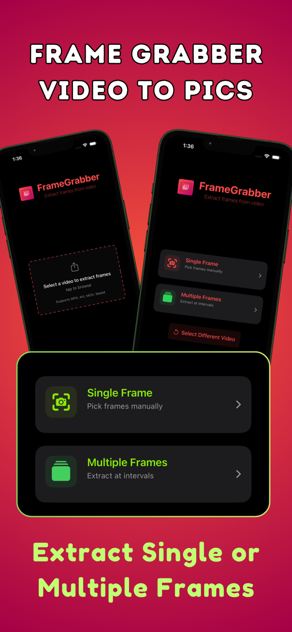 FrameGrabber是一款强大的帧抓取应用程序,可从任何视频中精确提取完美帧。具备手动帧提取功能,通过精确视频控制定位准确时刻,用先进技术提取单帧;支持批量帧提取,能按自定义间隔自动提取多帧;还有时间戳叠加、灵活保存选项,可导出到自定义文件夹并有序命名;支持所有主流视频格式,适用于内容创作者、视频编辑、研究人员、教育工作者及有精确帧提取需求的人。