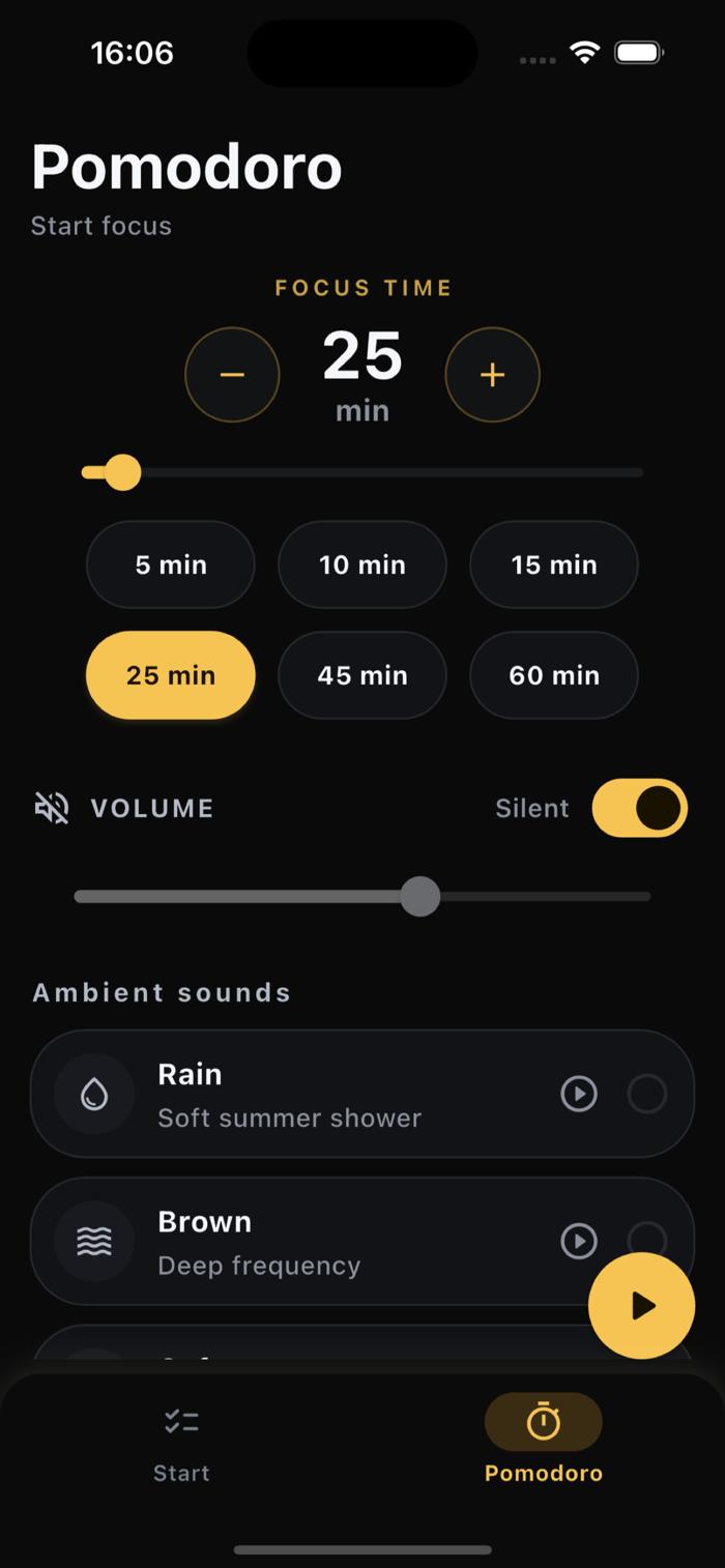 Focus Task - Pomodoro专为ADHD设计,帮你走出任务瘫痪。它将大任务拆成小步骤,以友好的专注节奏助你温和起步。能保存任务,用番茄钟专注计时器按结构化节奏推进,执行功能困难时减少阻力。注意力分散或出现回避拖延时,内置模式给你简单节奏,保护专注、减轻压力,让长任务更易坚持,无论工作、学习还是生活琐事皆适用,需订阅获完整权限,可在App Store管理取消订阅。