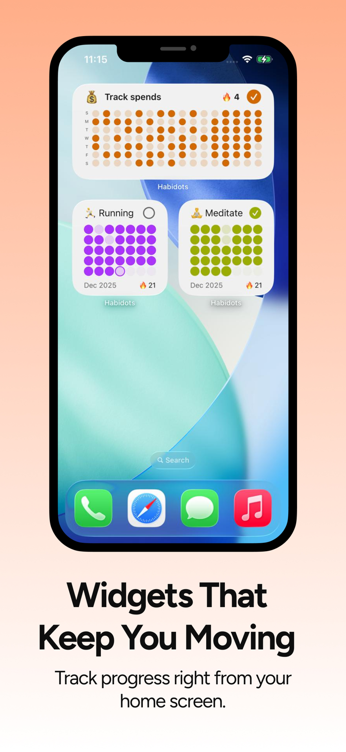 Designed with a clean and minimalist interface, Habidots helps you focus on what matters most: showing up every day.