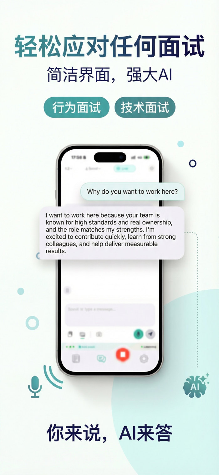 AI面试大师是一款实时面试辅导工具。面试过程中,它能实时听懂考官的问题,并在几秒内给出专业回答建议。无论是视频面试、电话面试还是现场面试,都能为你保驾护航。