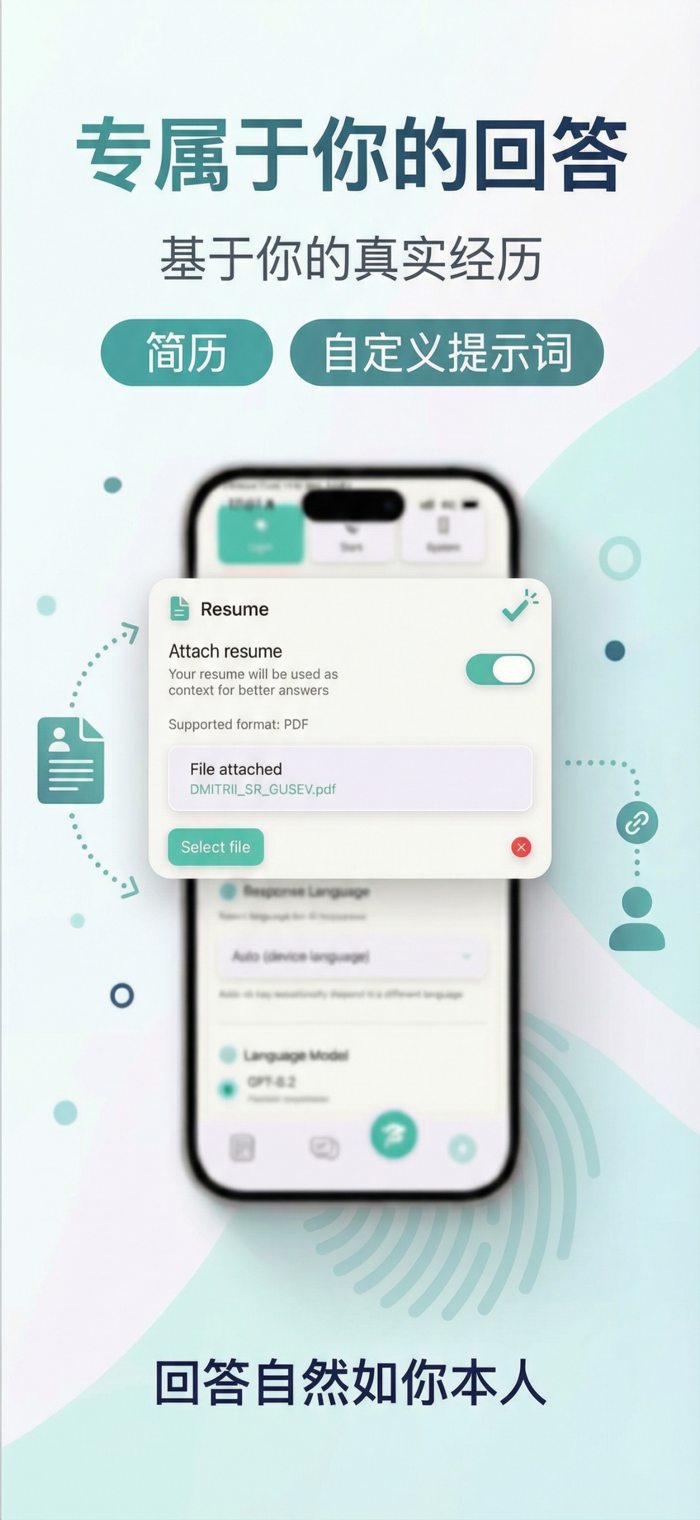 上传你的PDF简历,AI会结合你的背景和经历来生成更贴合、更个性化的回答。