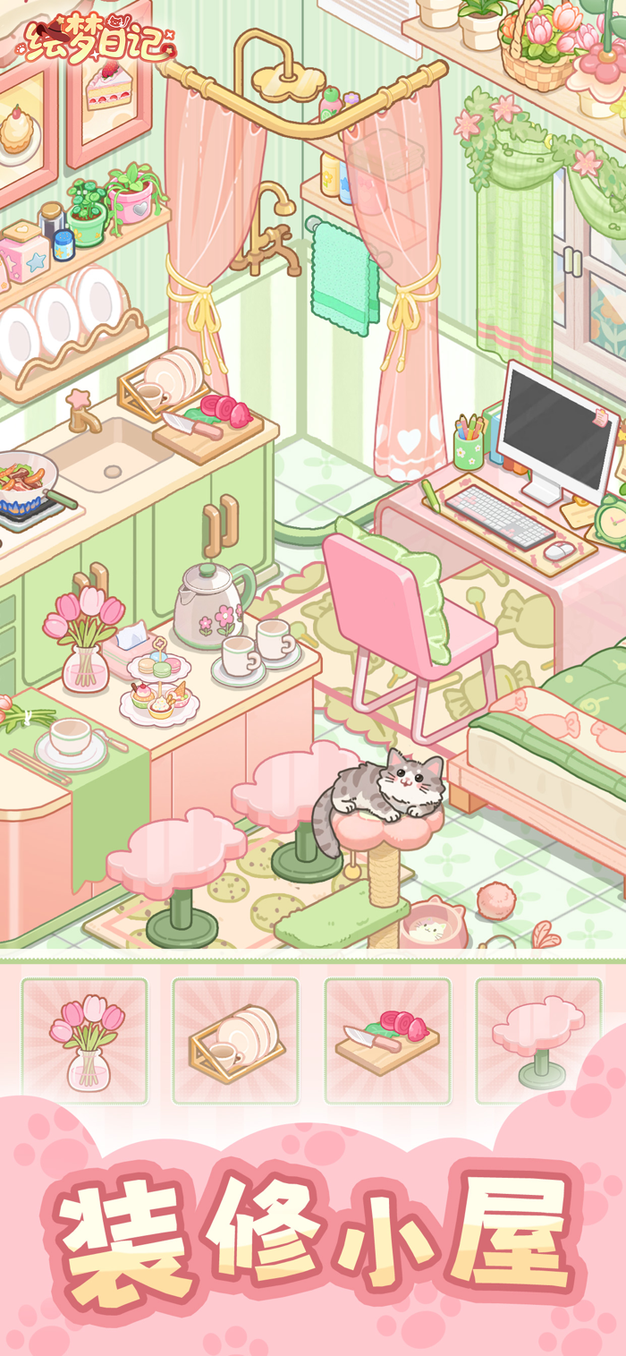 《绘梦日记》是一款集模拟经营、自由装修、少女换装于一体的治愈生活模拟器。玩家在魔法小猫引领下,翻新破旧小店并开张。可升级甜品工坊,多线经营扩展版图;能自由装修,多种风格混搭打造理想空间;还能解锁专属衣橱,拥有可爱Q版与精致正比两种换装风格,享受无KPI和DDL的惬意,写下绘梦日记。