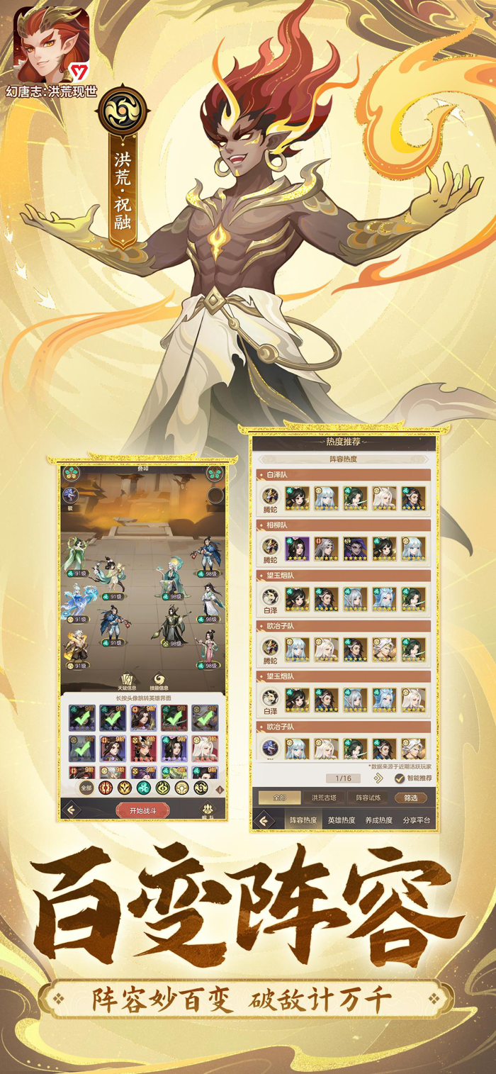 《幻唐志:洪荒现世》是策略放置卡牌手游,玩家将置身洪荒乱世大唐,结识神仙豪杰,自由构筑技能天赋。游戏有特色赛季轮回制,赛季更迭有新体验,卡牌星级保留,大部分养成重置,适合不同玩家。还能自由养成,英雄天赋技能独特,品阶飞升可换大招,搭配装备法宝玩法丰富。能组建百变阵容,接触六大阵营招募豪杰,利用阵营加成克制破敌,支持定向寻缘。此外,都城交易中心可买卖物品换资源。