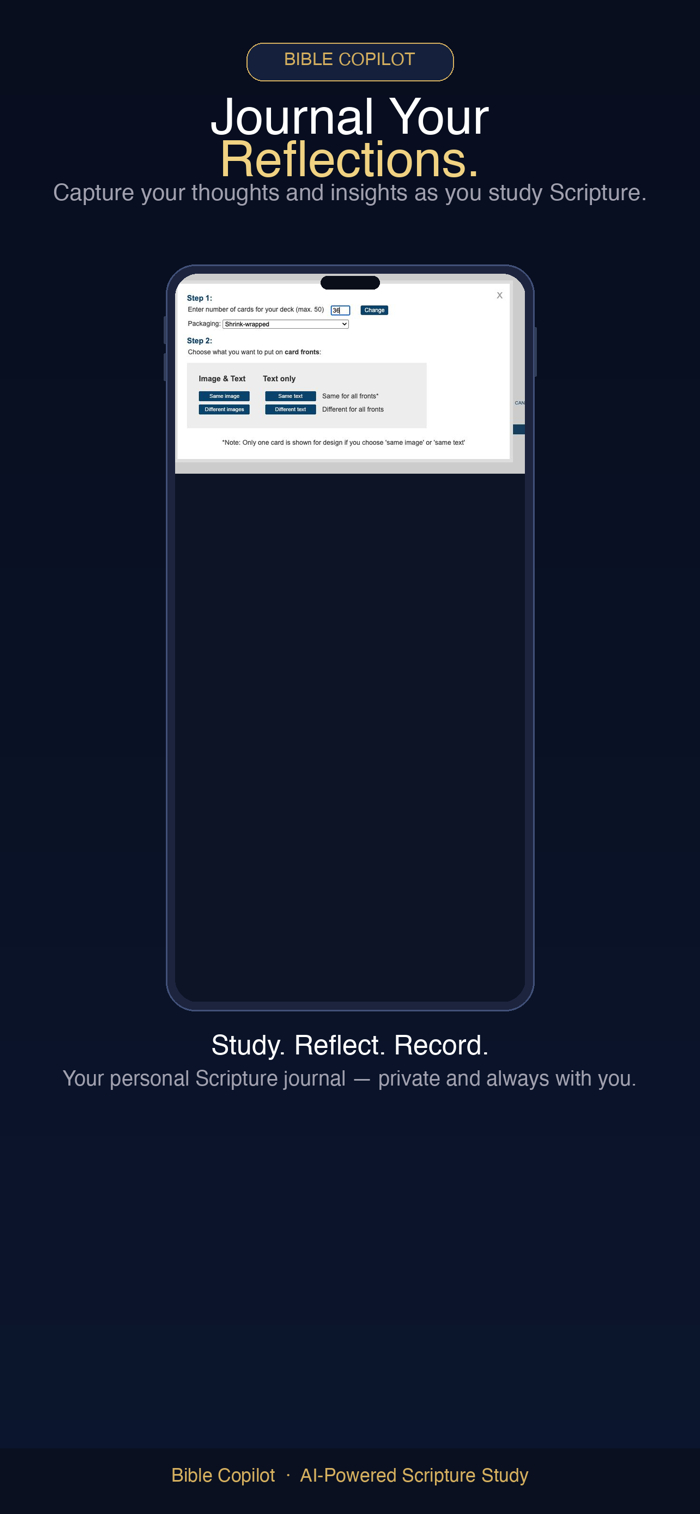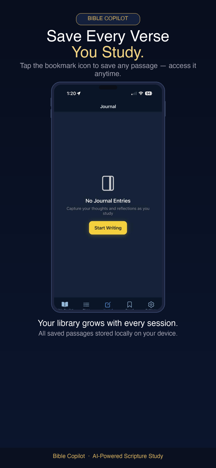 Save insights from any study session. Build a personal library of notes organized by verse and study mode. Track your daily streak and watch your consistency grow.