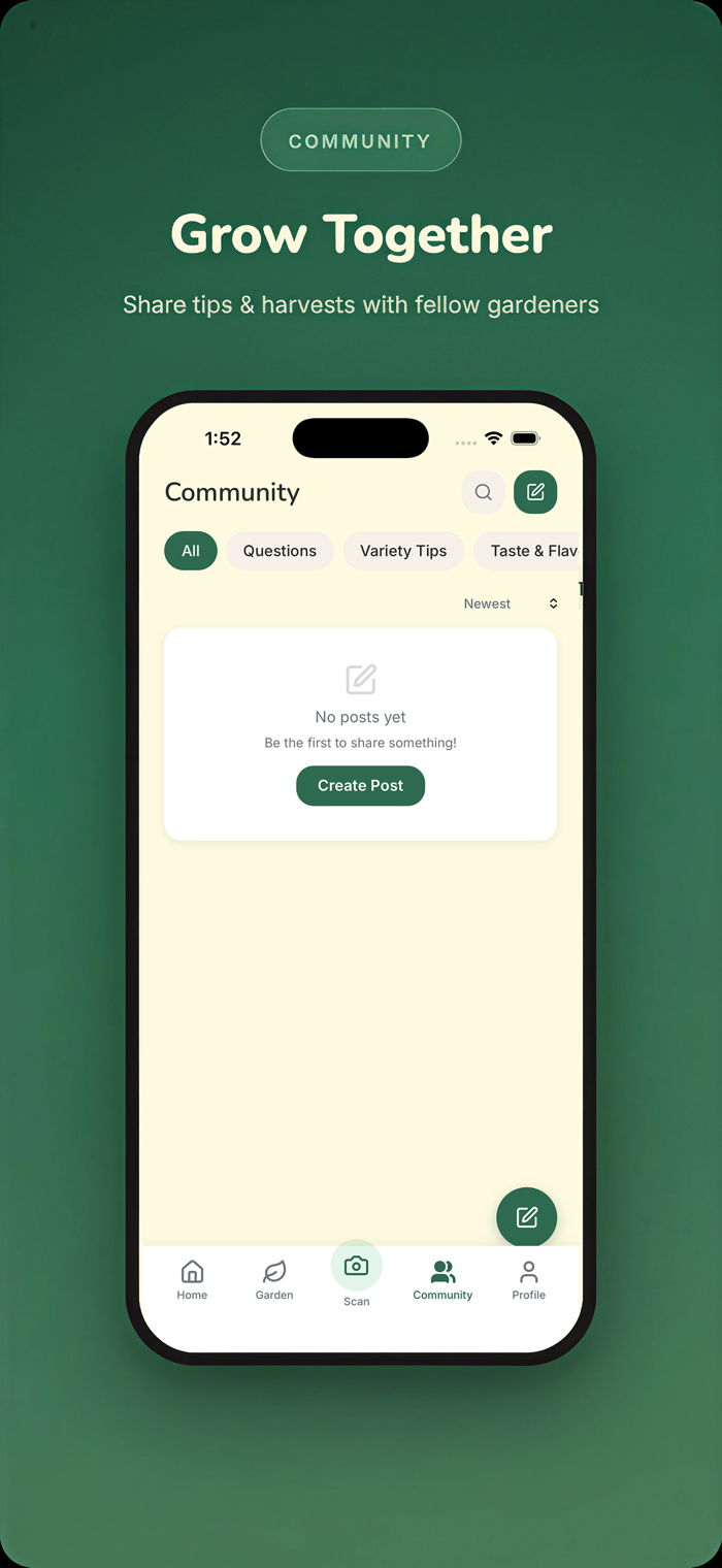 Join a growing community of gardeners. Share your wins in Show & Tell, ask questions, swap variety tips, get pest help, or guide beginners. Like, comment, save, and search posts across categories built for real gardeners.