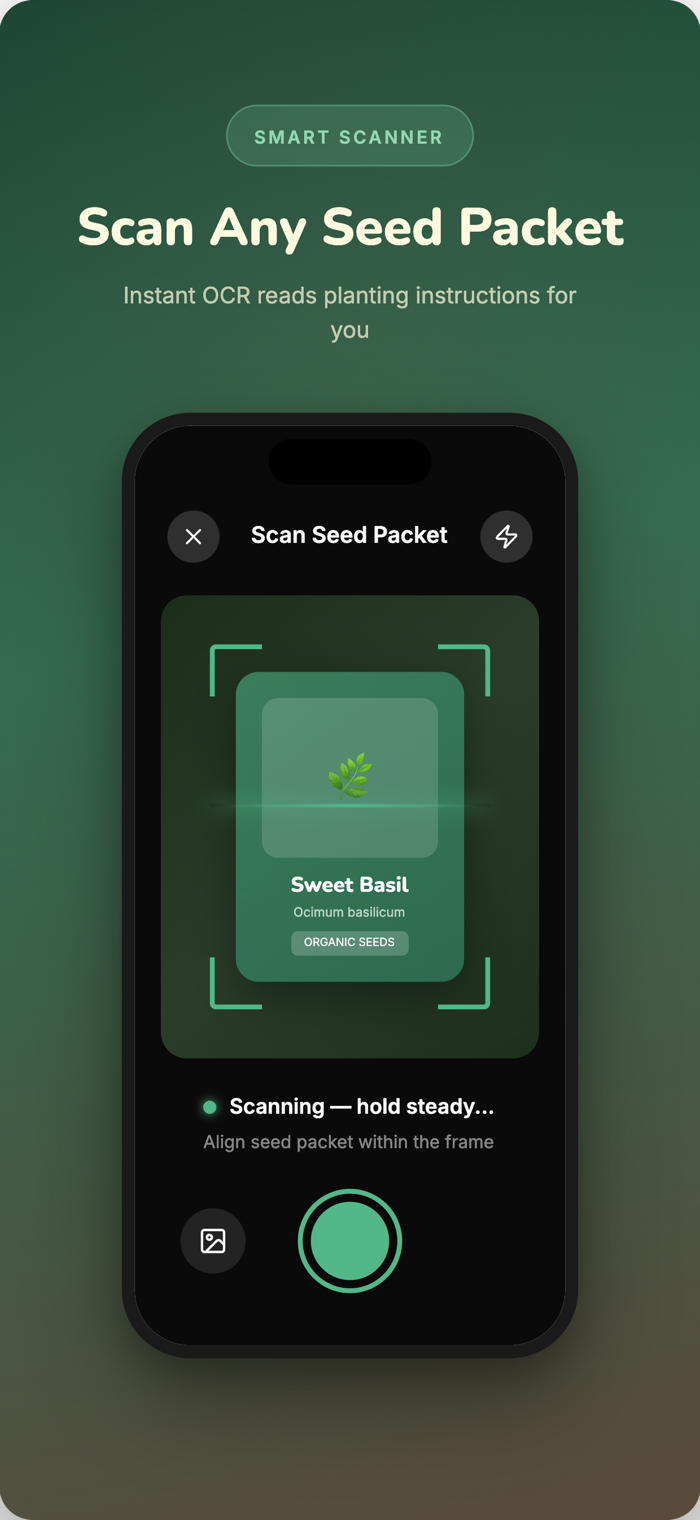 Point your camera at any seed packet and let our AI-powered scanner do the rest. Seed Sown uses optical character recognition to extract planting instructions, spacing, depth, germination time, and more — then auto-fills your plant profile. Scan both sides of the packet for complete details.