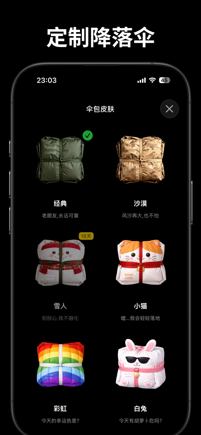 选择你喜欢的降落伞皮肤,开启属于你的飞行旅程。