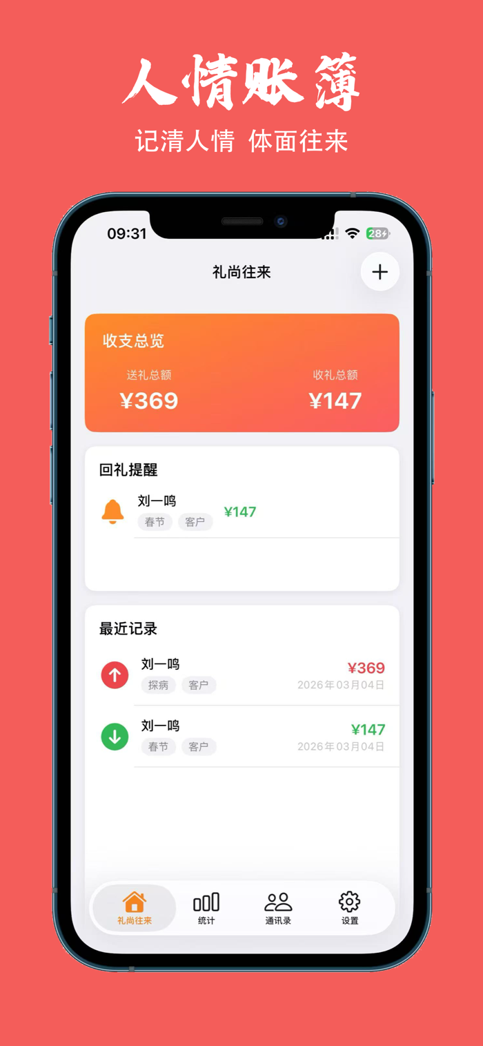 礼尚往来APP,不是冰冷的记账工具,是一本有温度的人情手札,帮你轻松记清往来、守住分寸,体面相处,不欠心意、不逾矩。
