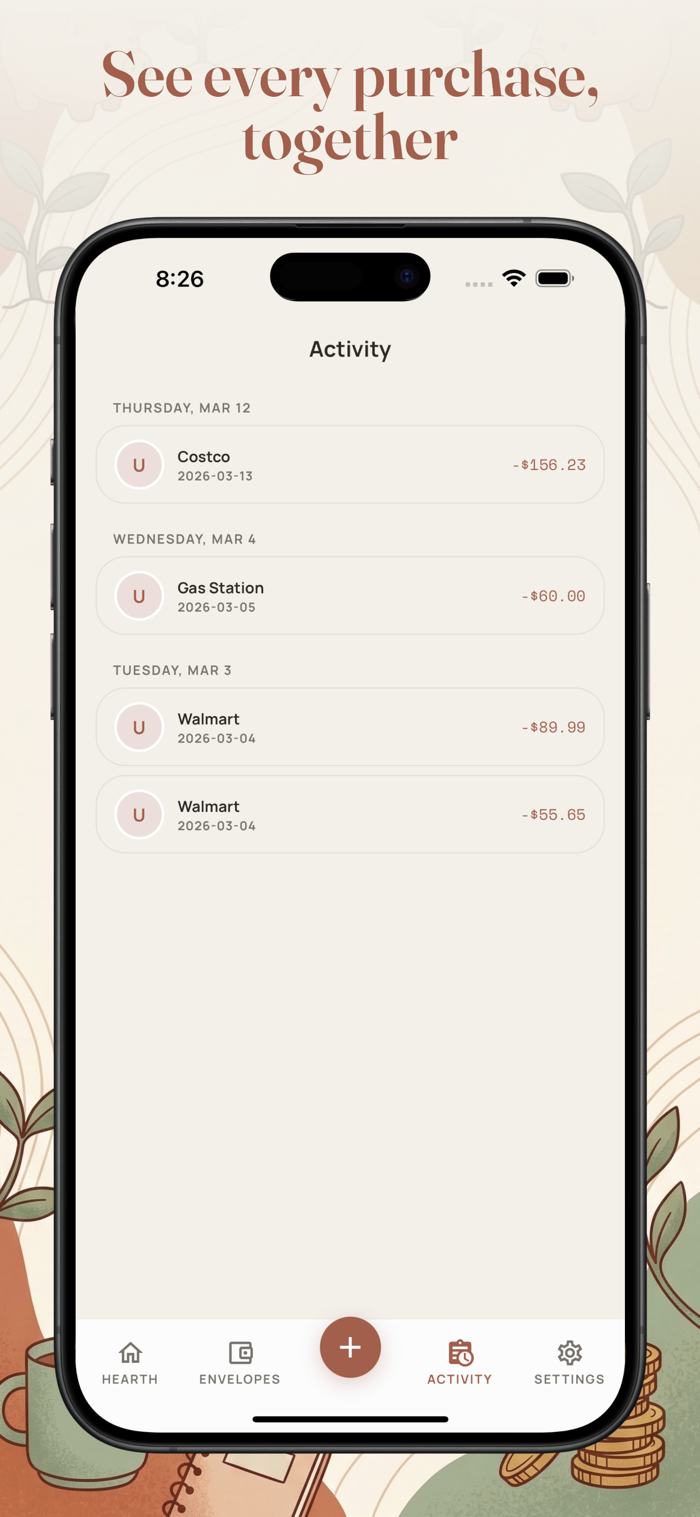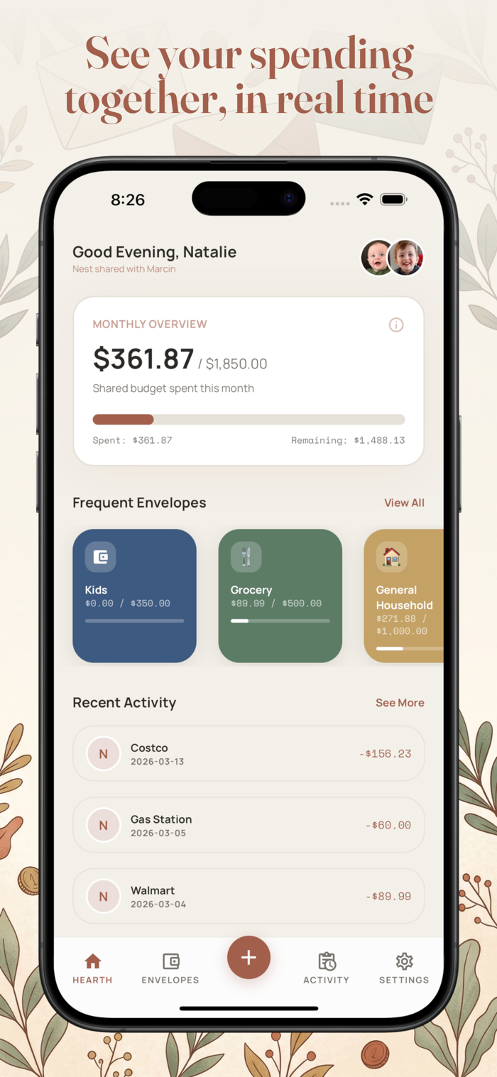 Hearth is envelope budgeting designed for two. Both partners see