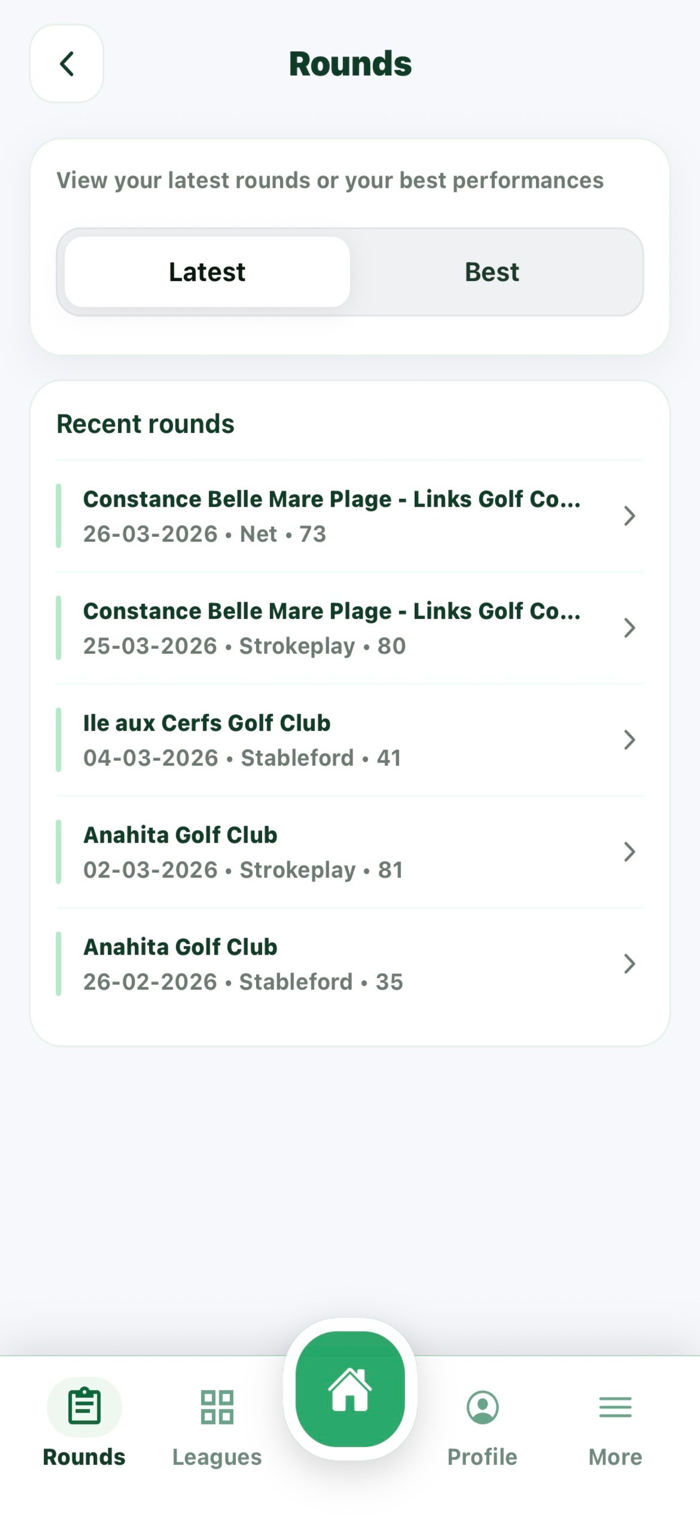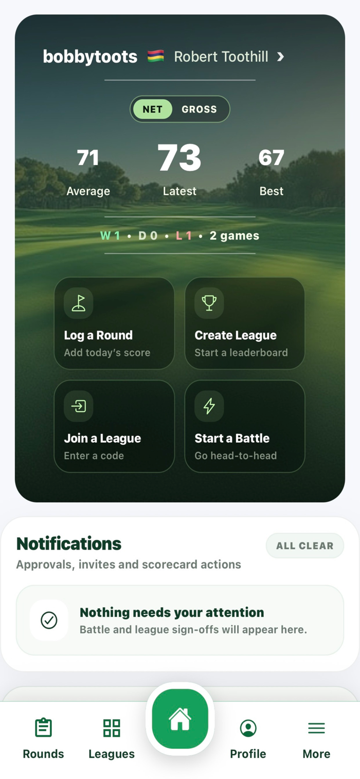 Log your rounds in seconds, track your performance, compete with friends, and climb global leaderboards.