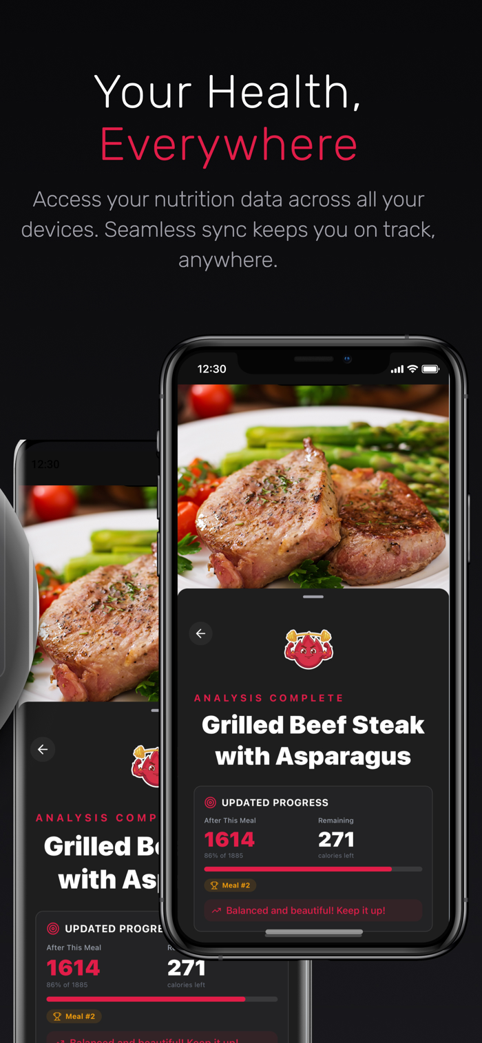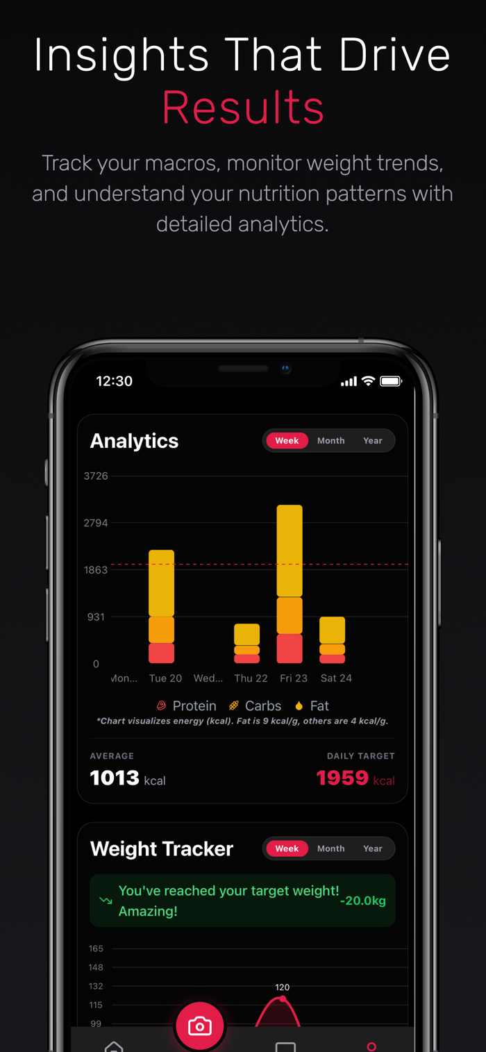 * Just snap a picture of your meal, and our AI instantly identifies food, estimates portions, and logs calories and macros.