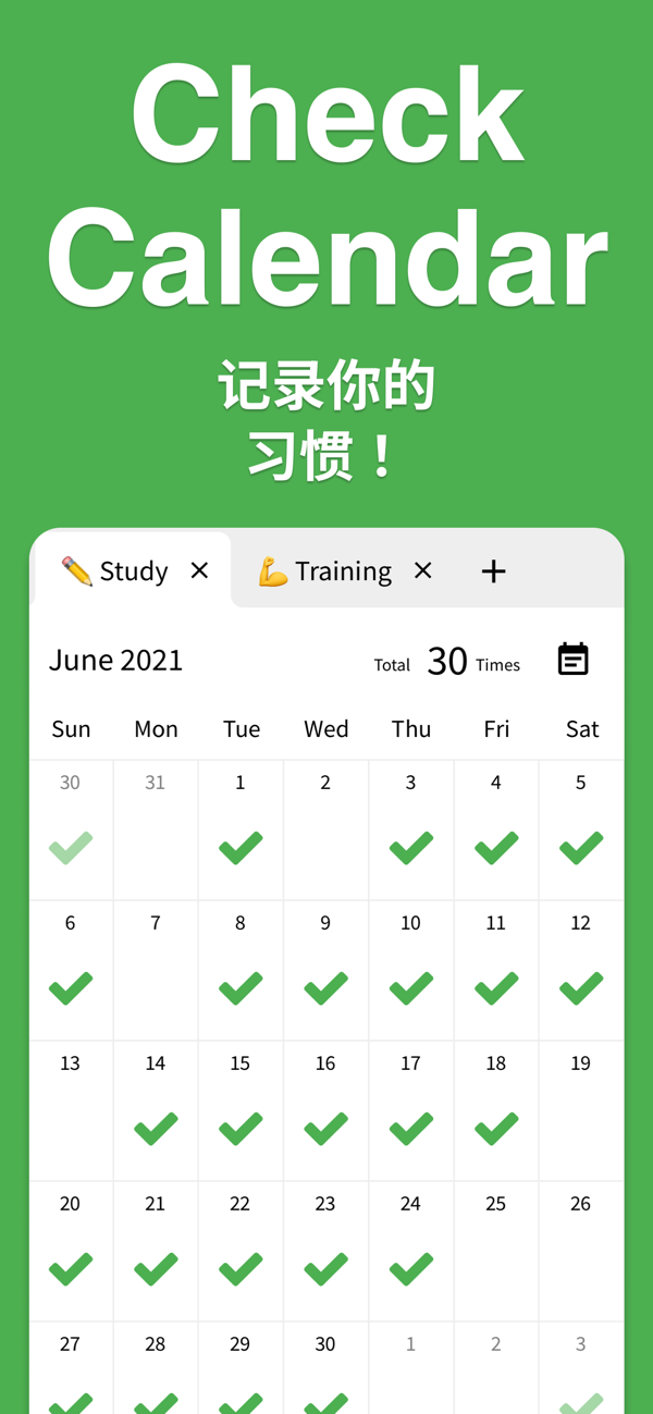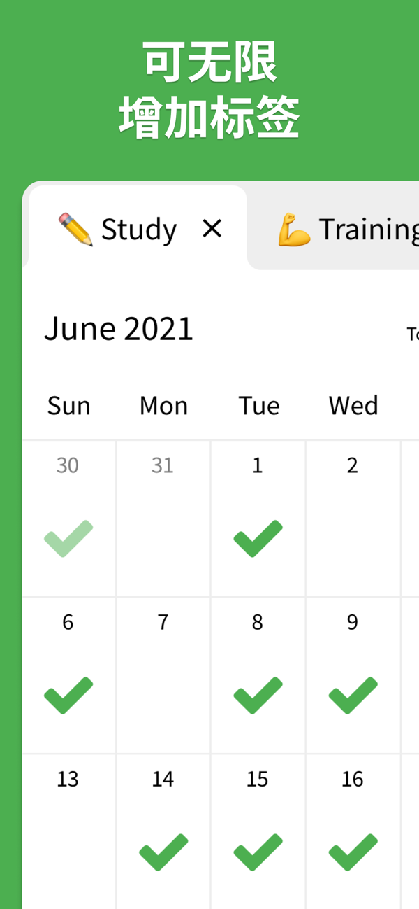创建不限数量的分类,如“锻炼”“学习”或“阅读”。