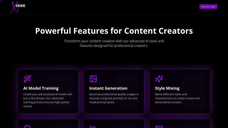 xMode.ai是顶尖创作者的首选AI工具,通过个性化模型训练与实时生成技术,几秒钟内产出专业级图像。支持风格混合,打造独特内容。隐私保护加密,确保数据安全。提供灵活的提示包,解锁创意,简化流程。透明定价与简洁界面,让创作更快、更简单、更有趣。体验超真实结果,无限制释放创意潜力。