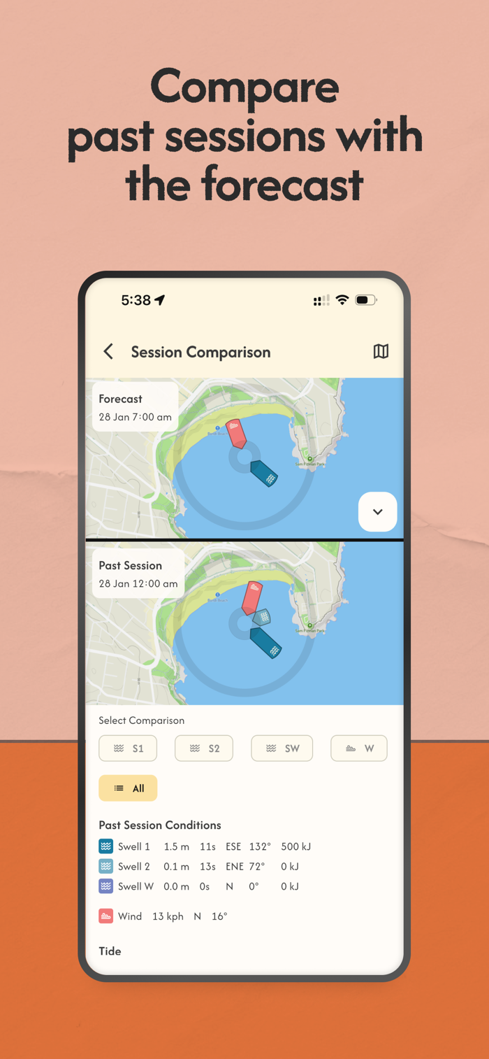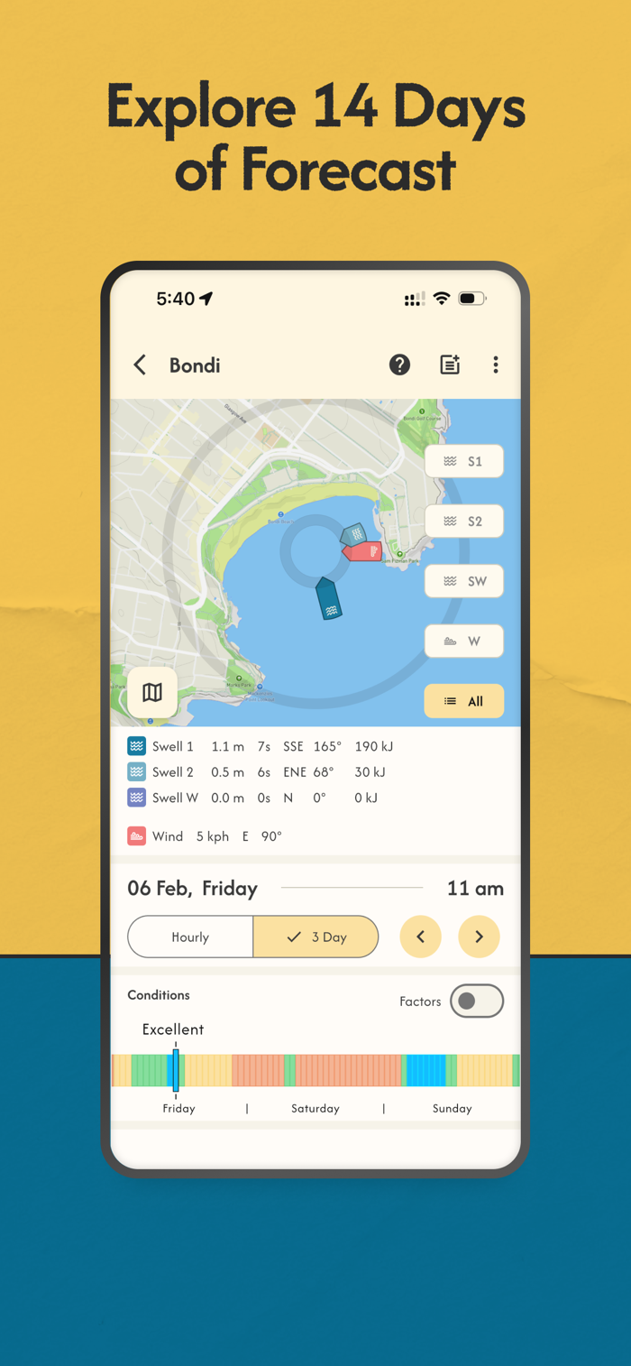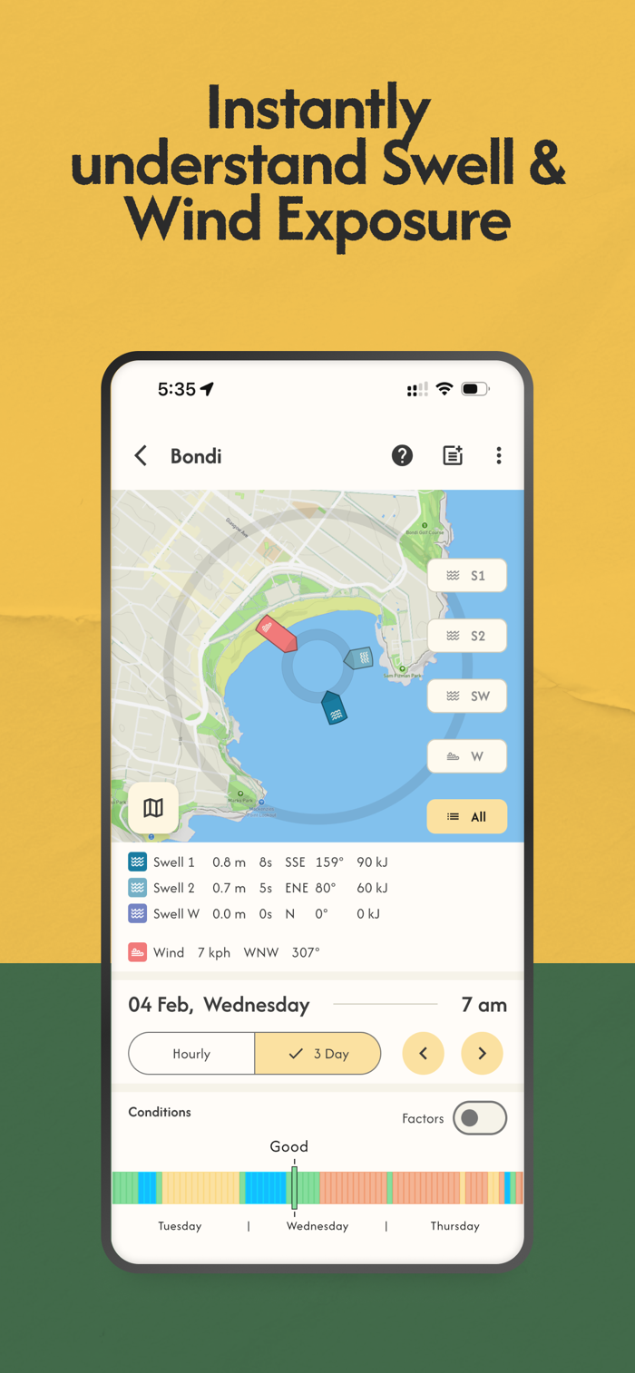 - Drop a pin anywhere in the world to see the forecast there. Use first-of-their kind tools to setup the exposure & inform the app of onshore/offshore directions.