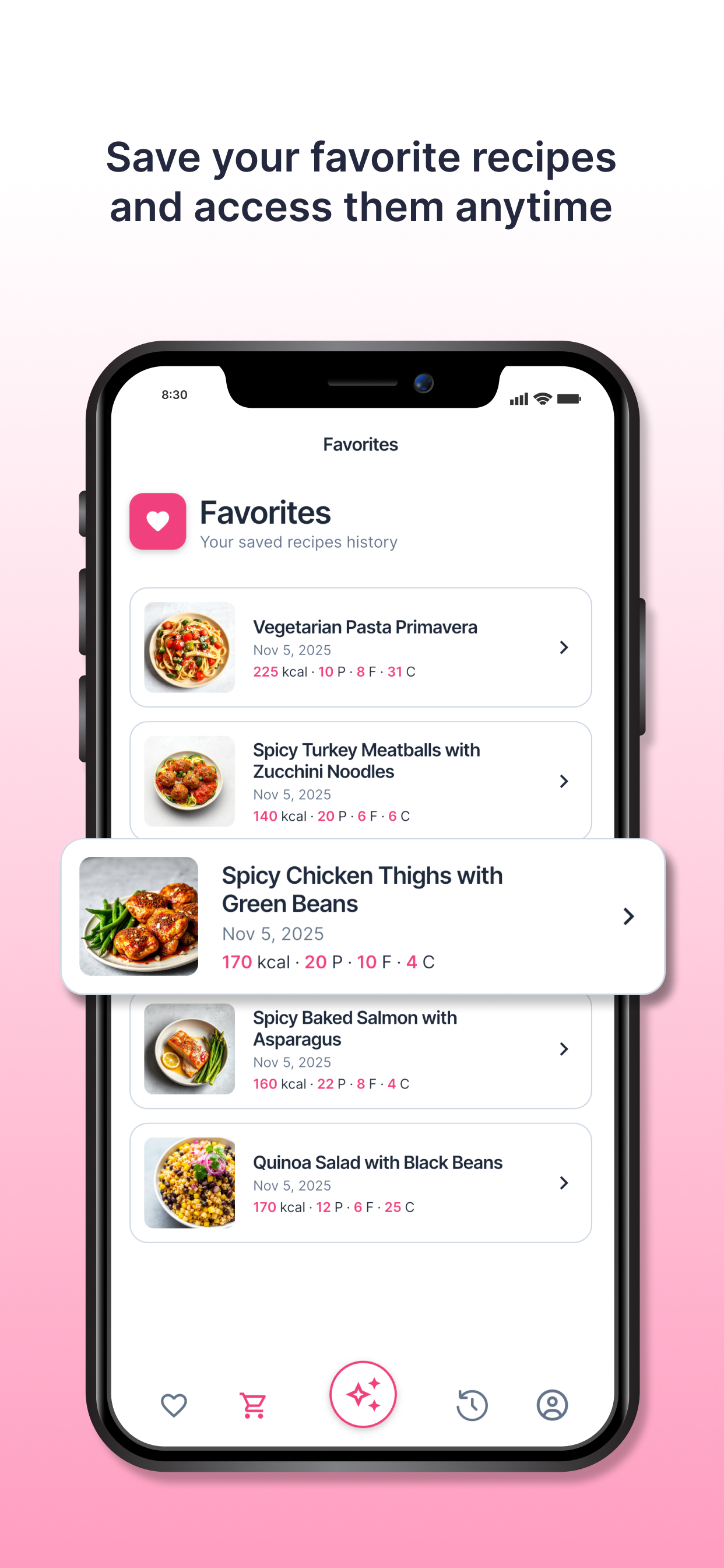 • History & Favorites - save and revisit your meals anytime