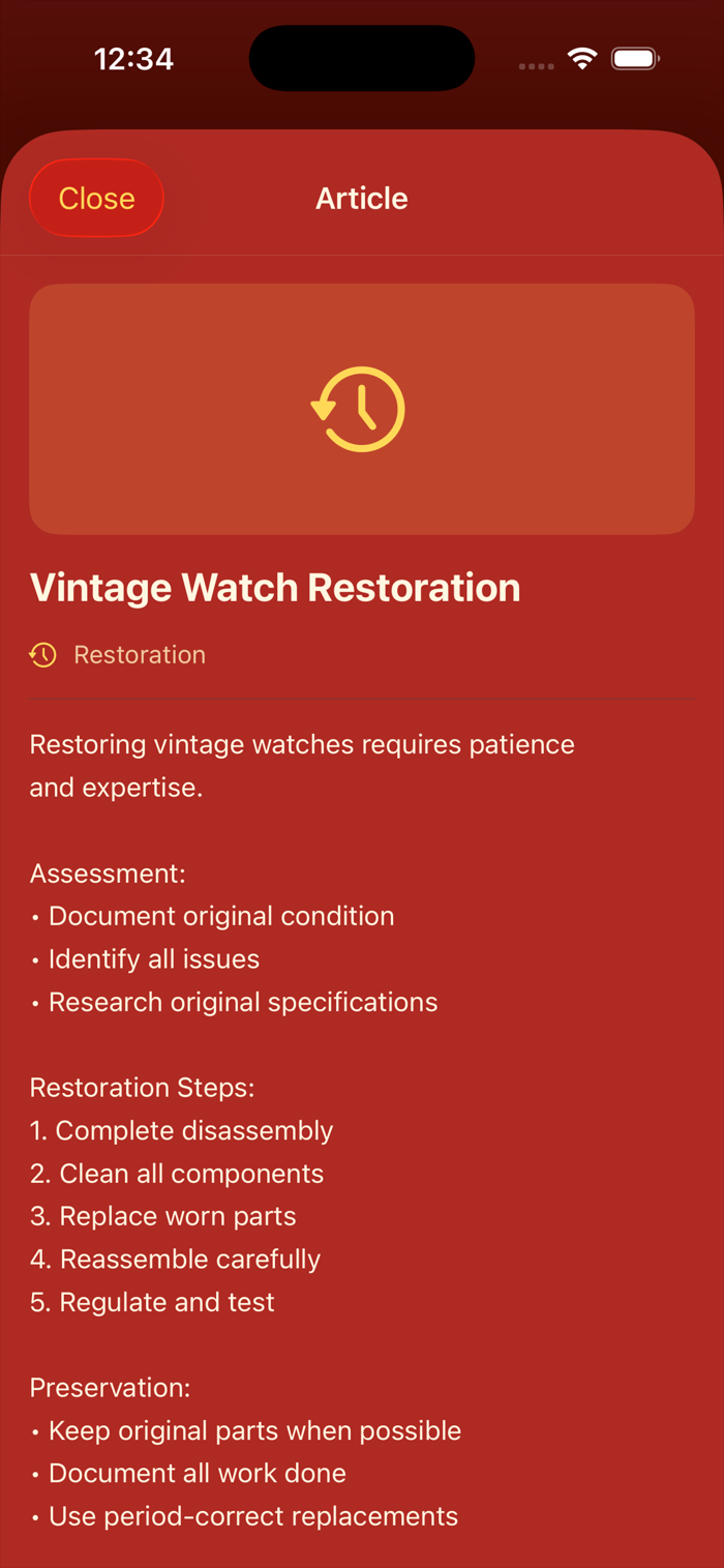 This app is designed for watch collectors, repair specialists, and enthusiasts who view watches as both functional devices and collectible art objects. It helps users catalog watches, record technical details, service history, and condition notes with photos. The app supports tracking maintenance schedules, restoration work, and provenance information for each timepiece. With detailed organization and analysis tools, it enhances collection management and deepens appreciation of horology.